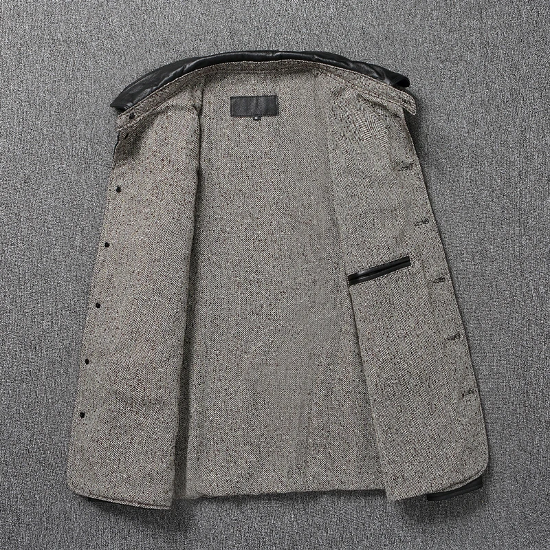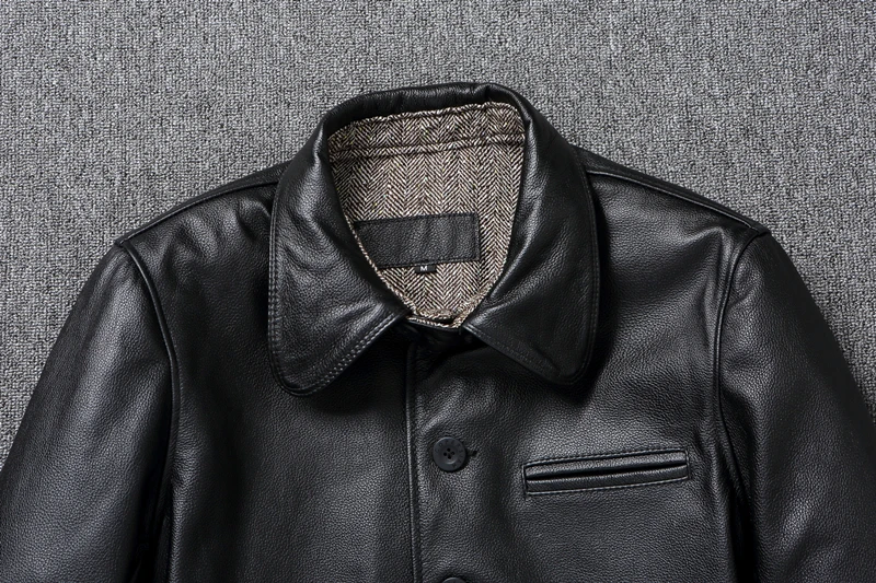 Classical Gatekeeper Jackets Long Genuine Cowhide Leather Jacket Men Spring Autumn Coats Mens Leather Jacket Chaquetas