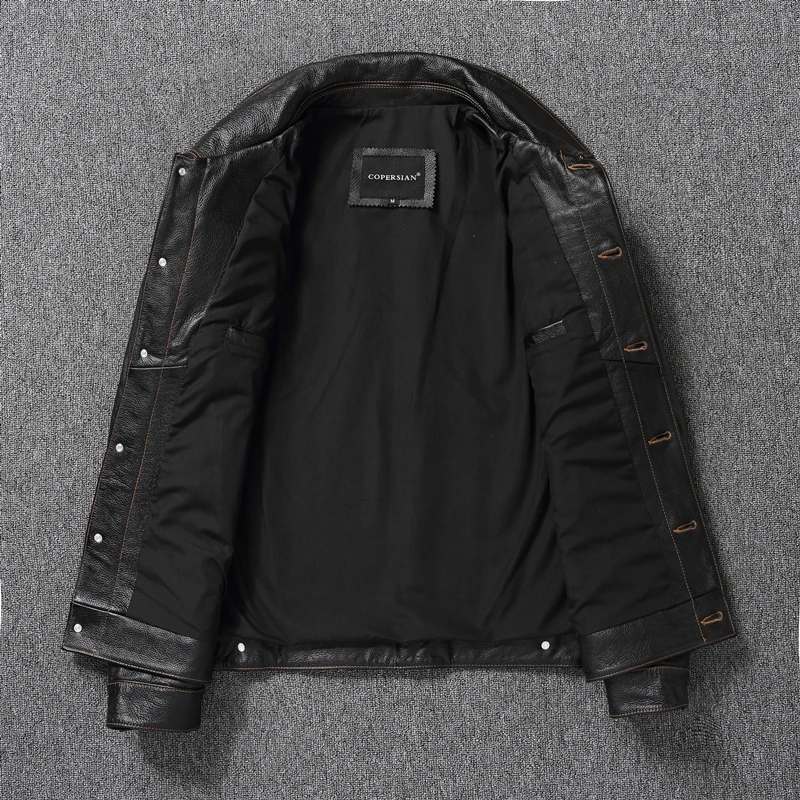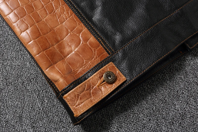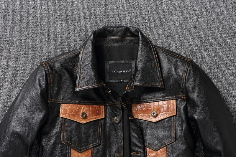 Cow Leather Patchwork Contrasting Lapel Leather Jacket for Men Casual Jacket Leather Coats Genuine Cowhide Leather Jacket Men