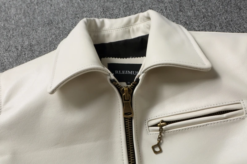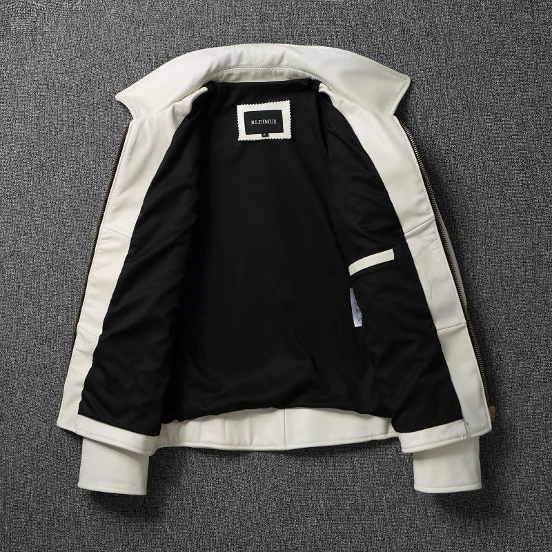 Fashion Off White Cow Leather Jacket for Men Slim Fit Men Leather Jacket Genuine Cowhide Coat Spring Autumn Male Clothes