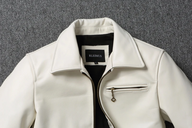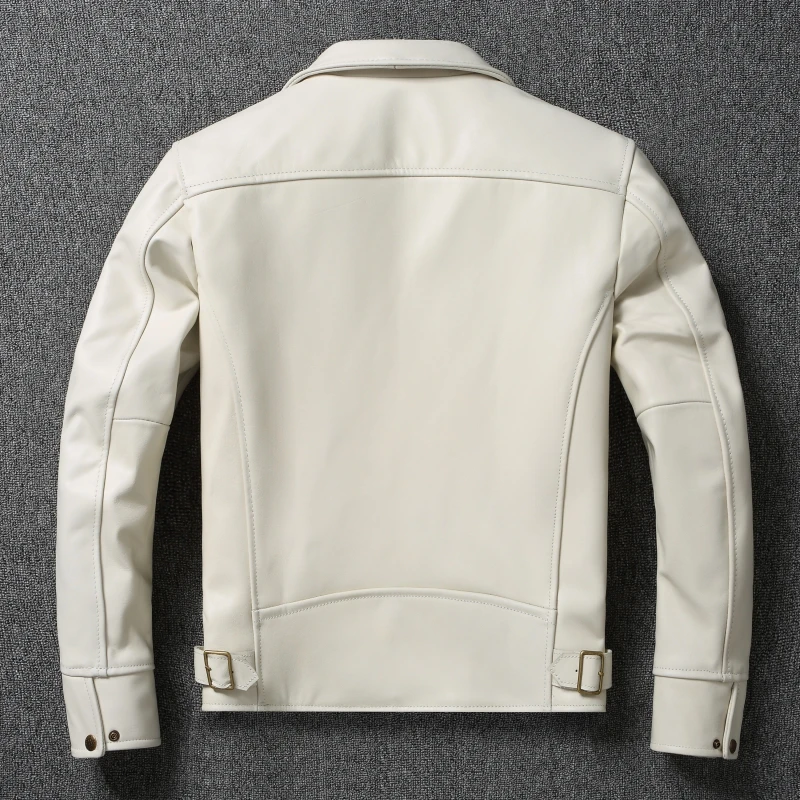 Fashion Off White Cow Leather Jacket for Men Slim Fit Men Leather Jacket Genuine Cowhide Coat Spring Autumn Male Clothes