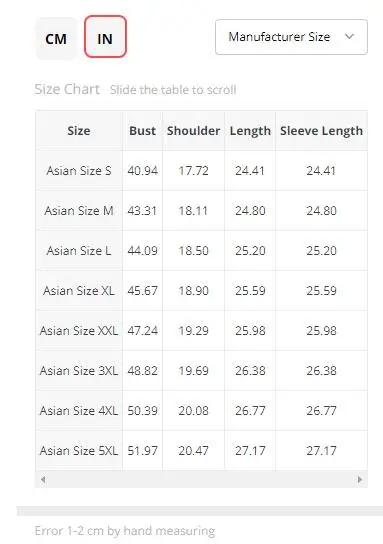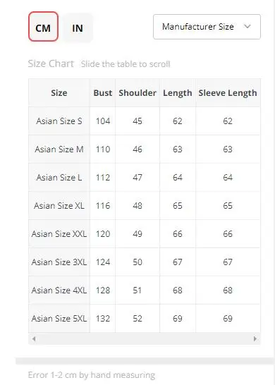 1. All measurements are in CM with 1-2cm measurment tolerance