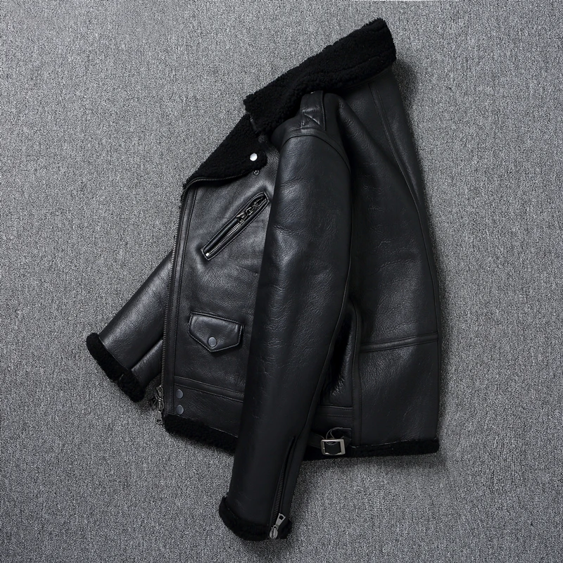 Natural Fur Genuine Sheepskin Shearling Coat for Men Fur Jackets Thick Warm Coats Winter Leather Clothing Small Fake Pocket