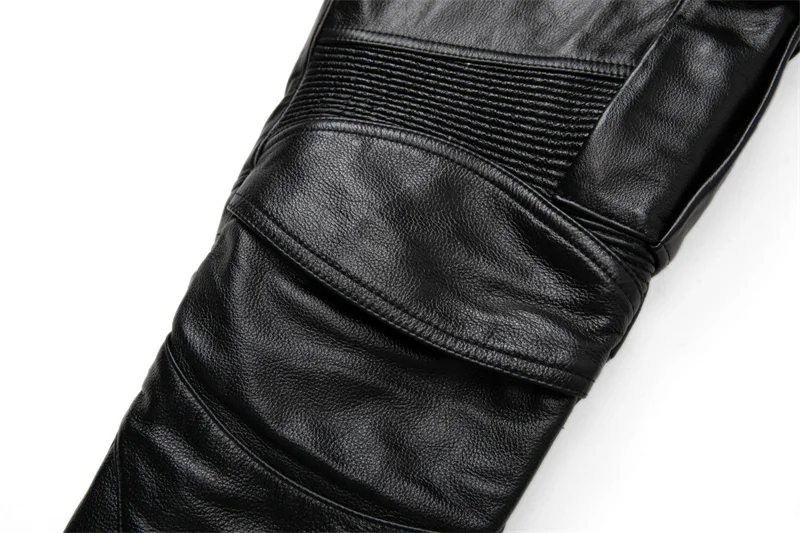 New Black Motorcycle Leather Pant First Layer Cowhide Leather Trousers Men Motor Riding Clothes Windproof Biker Pants Autumn
