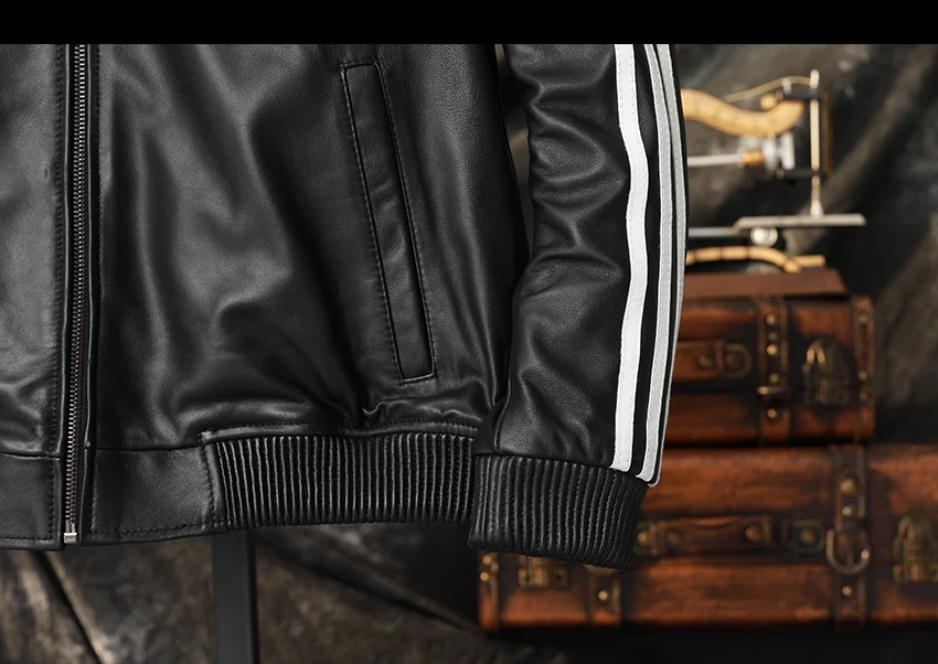 New Men's Leather Jacket Sheepskin Cowhide Baseball Jacket Natural Genuine Leather Coat Soft Men Leather Jacket Spring Autumn