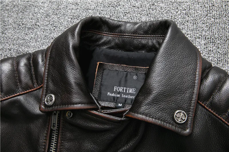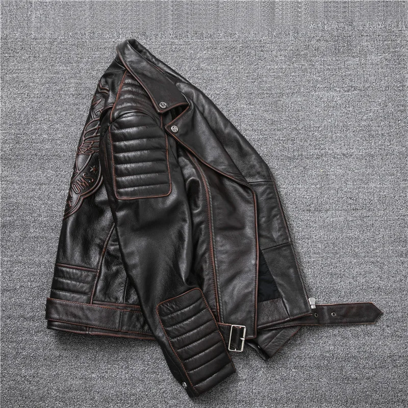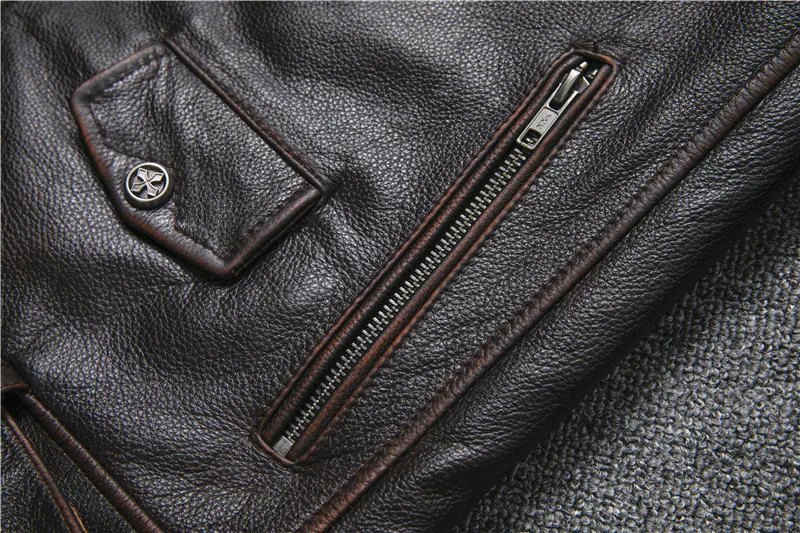 Oblique Zipper Vintage Brown Style Genuine Leather Jacket Men's Really Natural Cowhide Motorcycle Style Slim Jackets Coat S-XL