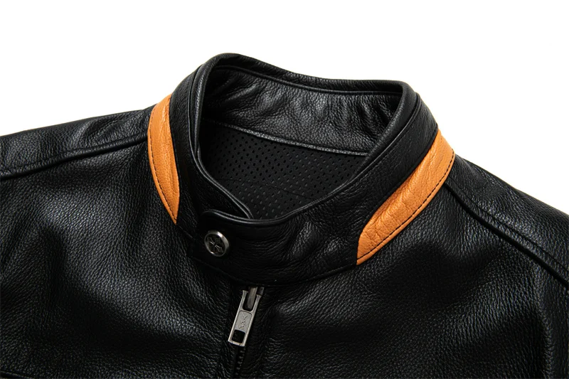 Protectors Mens Motorcycle Jacket Genuine Leather Cowhide American Biker Men Leather Jacket Racer Cow Leather Coats Moto Biker
