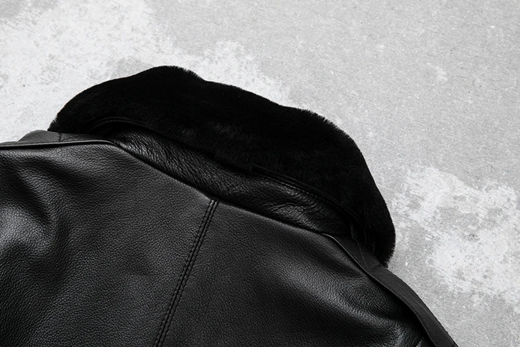 Removable Natural Fur Collar Genuine Cow Leather Jacket Men Thick Winter Coat Warm Flight Jackets Air Force Aviator Coats Autumn