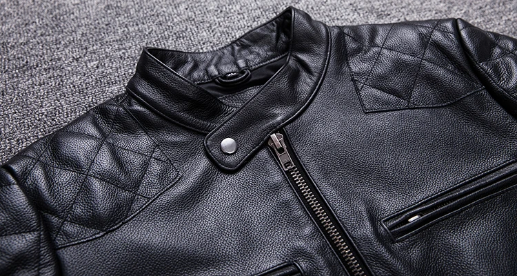 Spring and Autumn Natural Cowhide Leather Jacket Men Motorcycle Jackets Biker Clothing Man Slim Real Leather Coat
