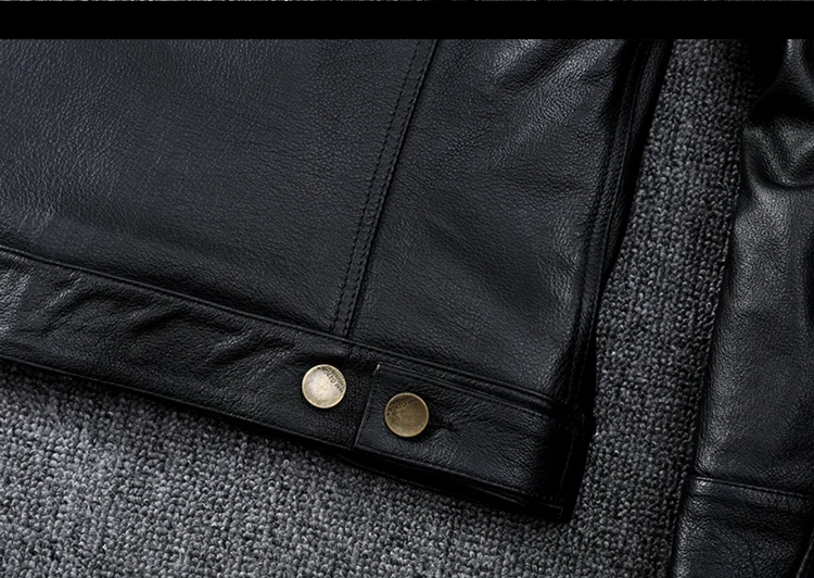 Spring Denim Genuine Leather Jacket Classic Slim Cowhide Button Coat Plus Size 3XL Mens Fashion Leather Clothing