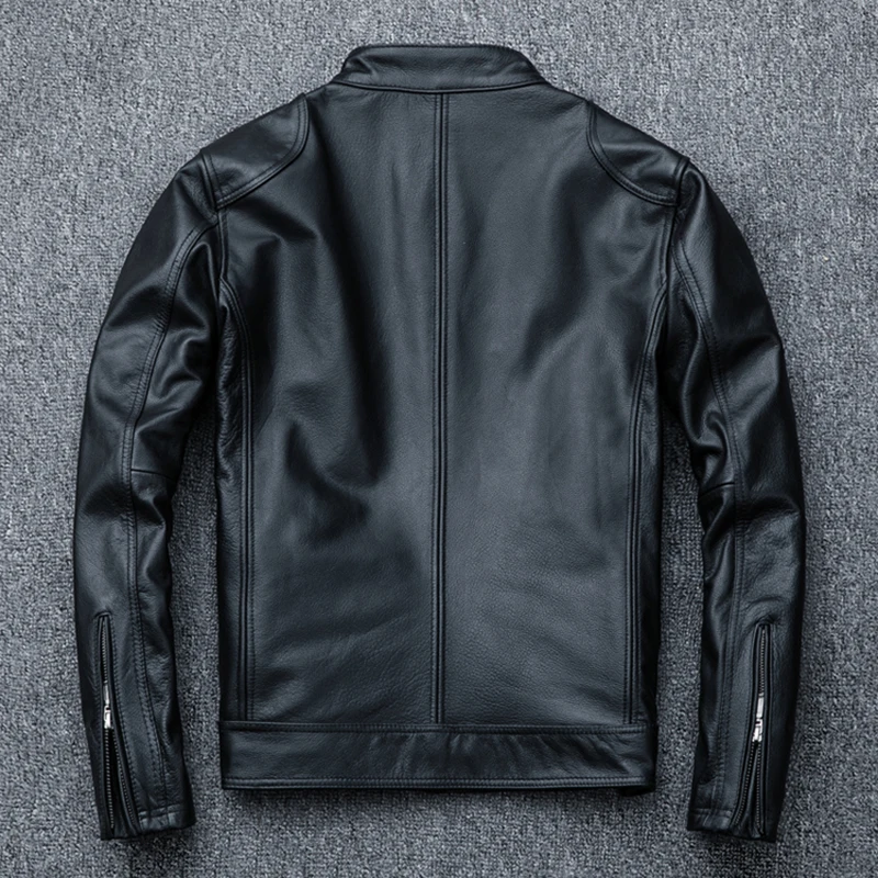 Spring Motorcycle Genuine Leather Jacket Men Cowhide Slim Short Coat Motor Biker Racer Natural Calf Skin Clothes Size S-5XL