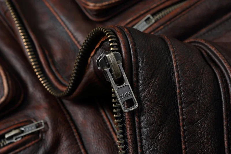 Vintage Red Brown Genuine Leather Jacket Men Soft Real Cowhide Black Winter Coat Biker Jackets Jaqueta Masculina De Couro