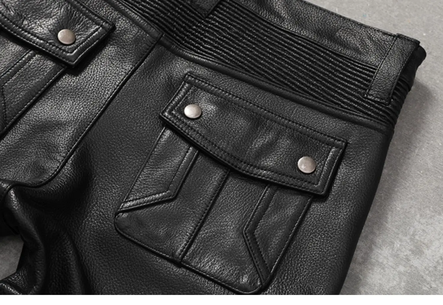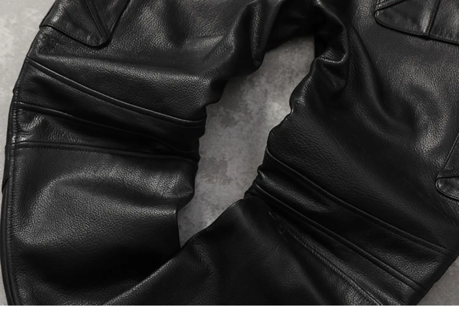Black Motorcycle Pant Men's Cowhide Genuine Leather Trousers Men Moto Biker Slim Pants with Knee Protectors Pantalon Cuir Homme