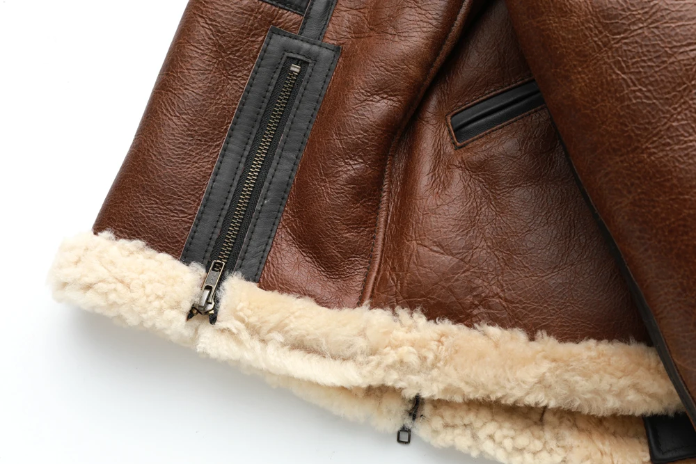 Brown Shearling Coat Men Thick 100% Natural Fur Coat Winter Men Leather Coat Warm Winter Asian Size M-4XL Clothing M263