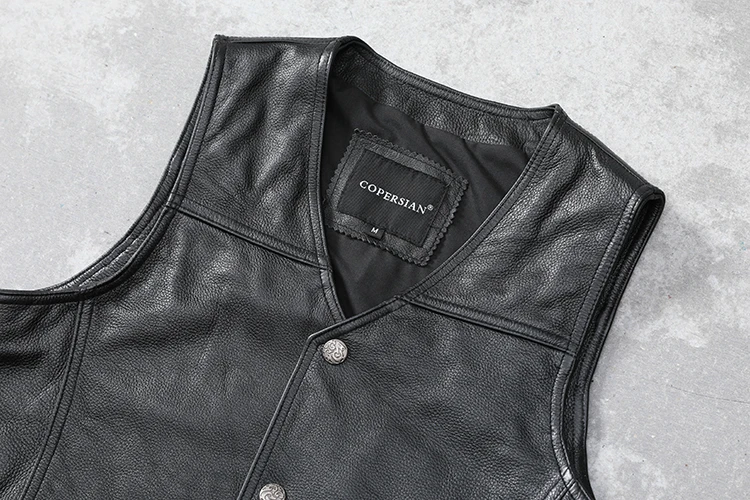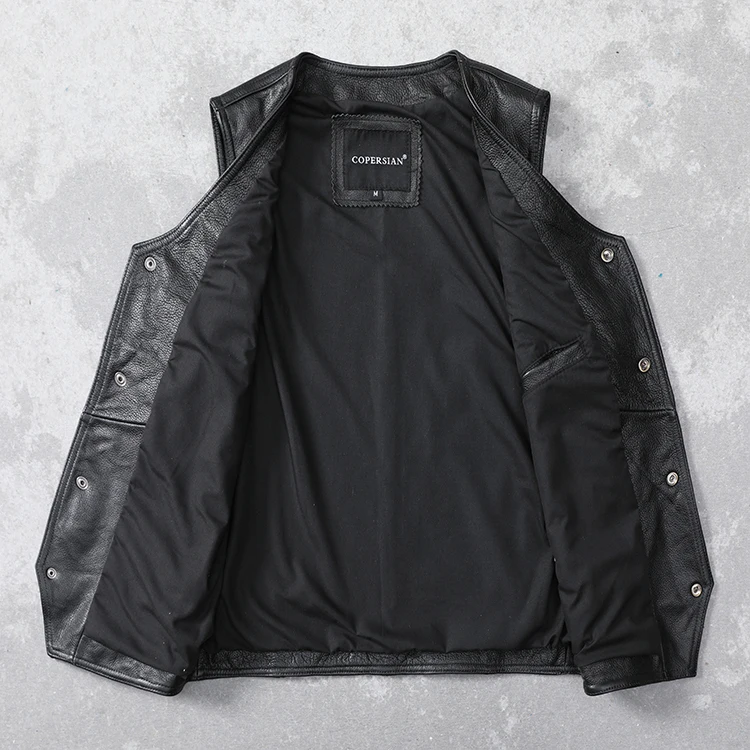 Casual Black Men Cow Leather Vest V-Neck Slim Genuine Leather Vests Mens Cowhide Waistcoat