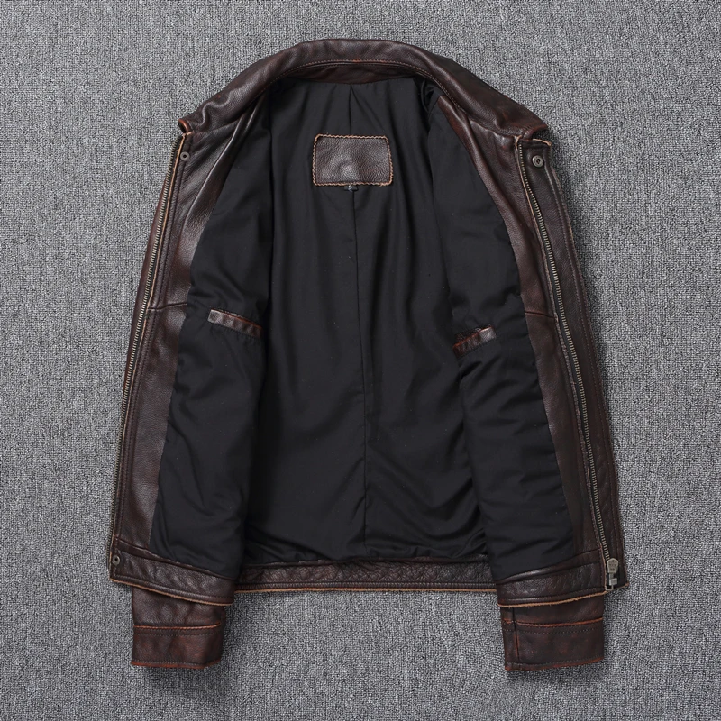 Casual Leather Jacket Men Real Cow Leather Retro Vintage Leather Jackets Mens Jackets Chaqueta De Cuero Para Hombre Casacos