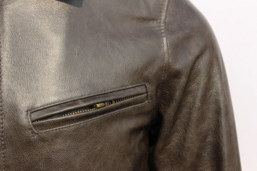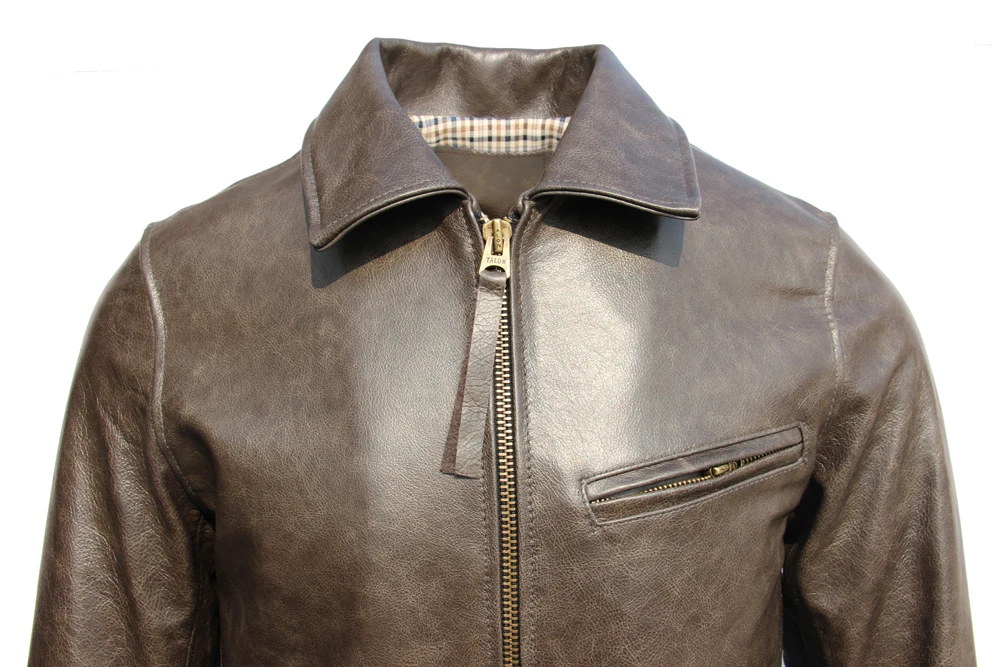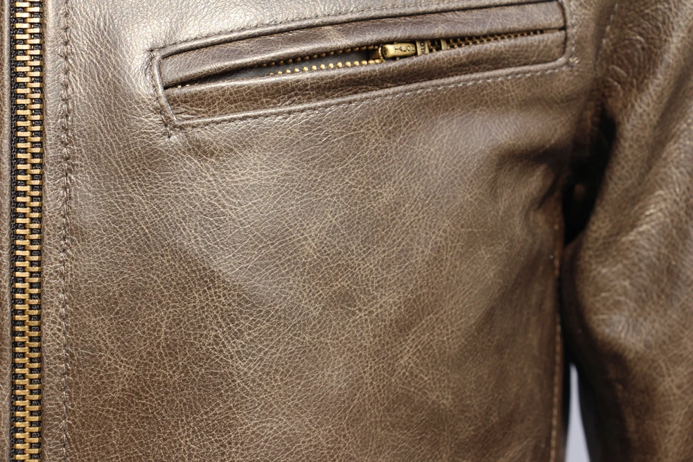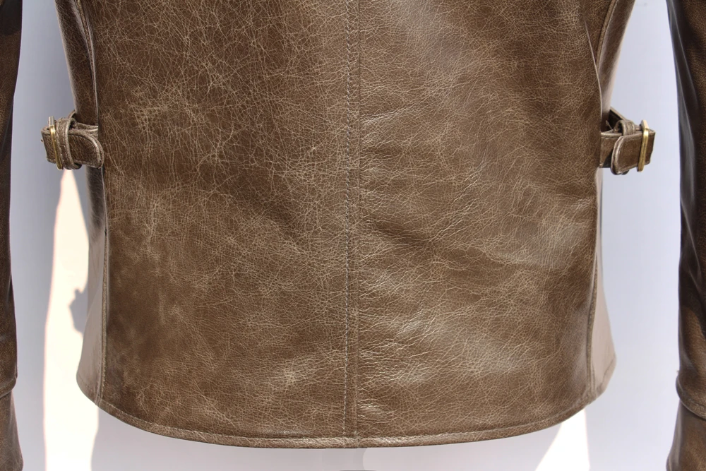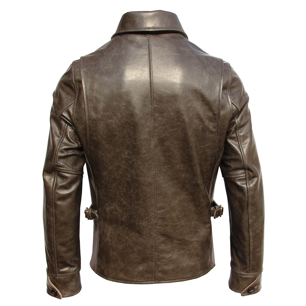 Classic 1930S Color Changes Oil Waxed Natural Cow Leather Jacket Men Real Cowhide Coat Male Clothes Autumn Chest 126cm M474