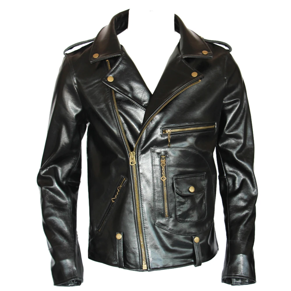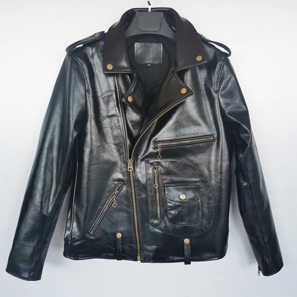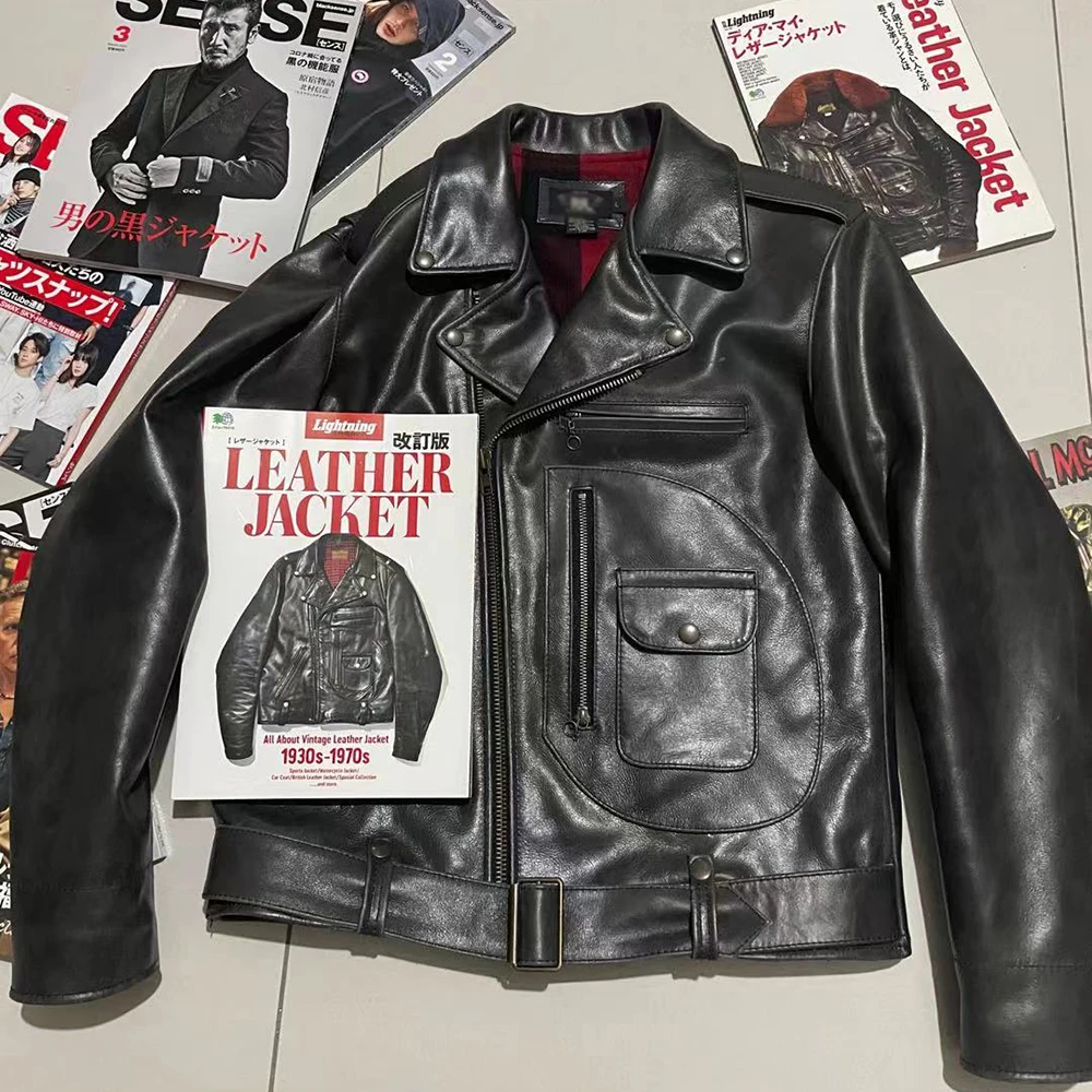 Classic J24 Motorcycle Style Genuine Leather Jacket Heavy Natural Horsehide Jacket Men Motor Biker Coat Winter Chest 128cm M701