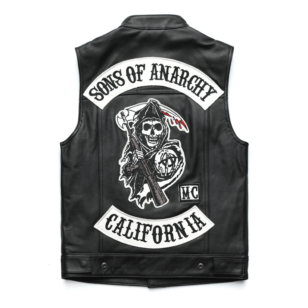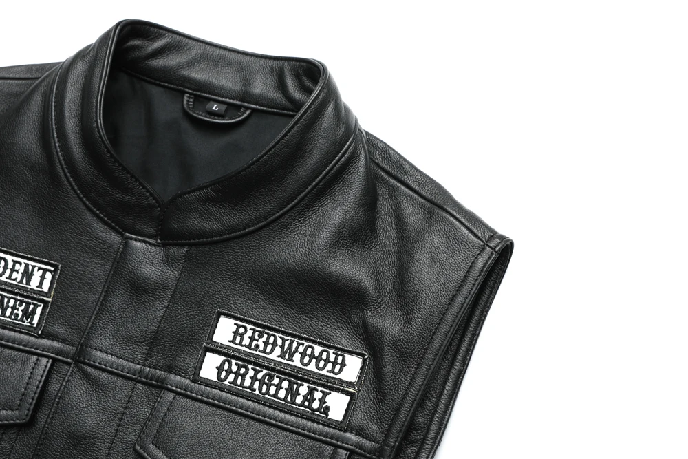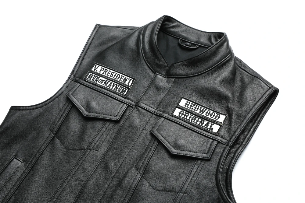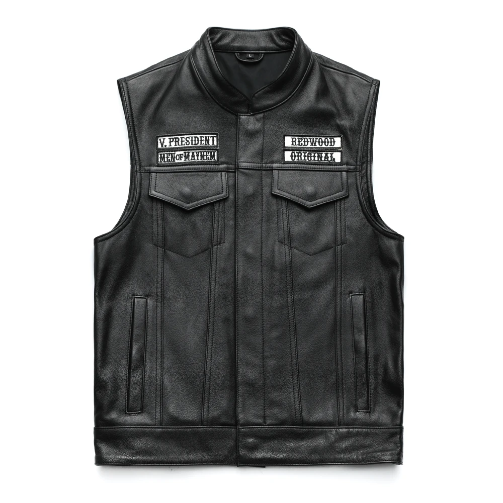 Classic Motorcycle Leather Vest Men100% Genuine Cowhide Skin Biker Leather Vest Moto Leather Waistcoat M436
