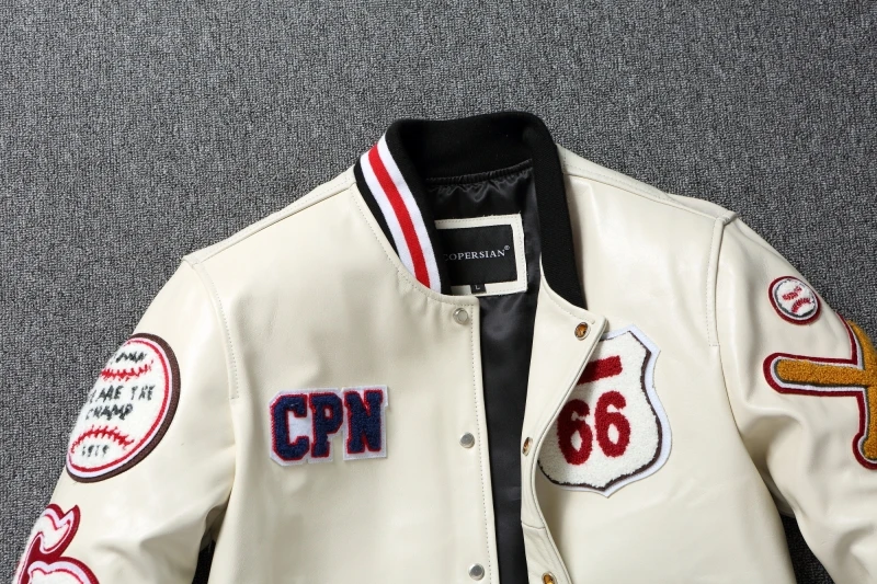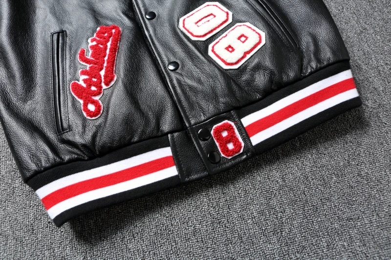 Embroidery Patches Baseball Jackets Genuine Cowhide Leather Jacket Men Motorcycle Biker Coats Autumn Mens Coat