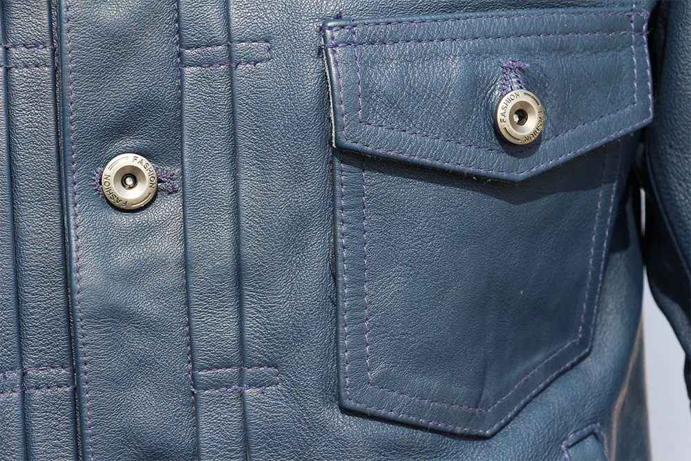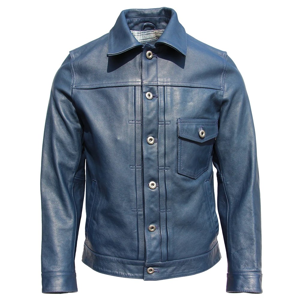 Fashion 506 Thick Natural Cowhide Genuine Leather Jacket Men Washed Vintage Cow Leather Coat Slim Fit Men's Jackets Autumn M004