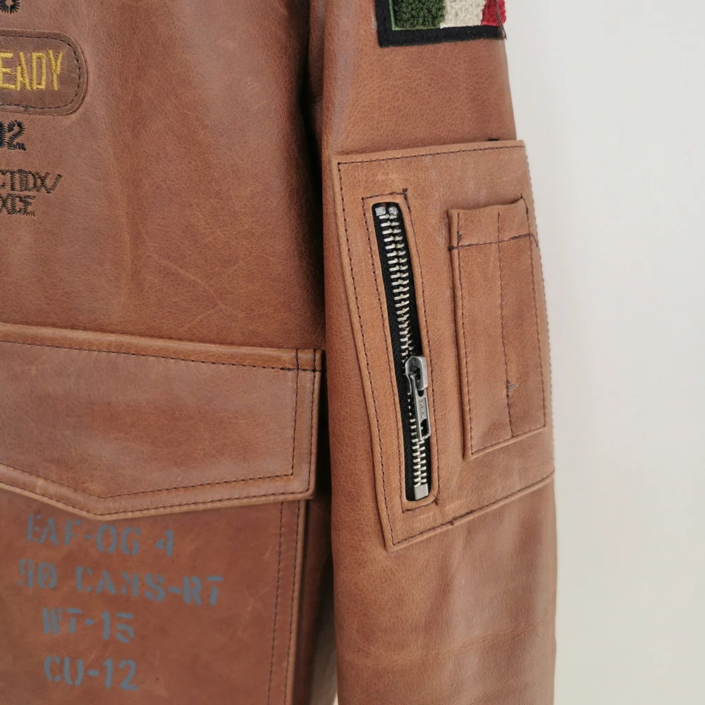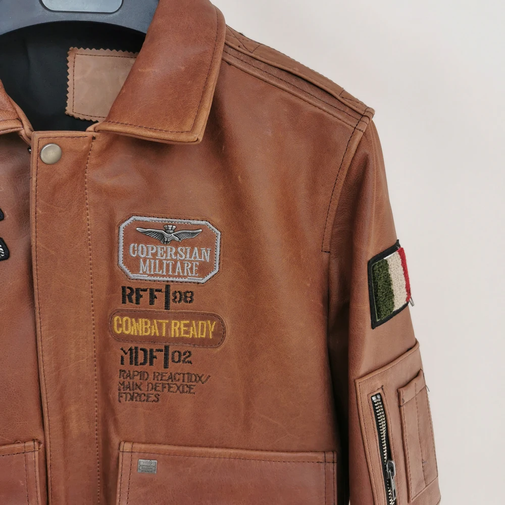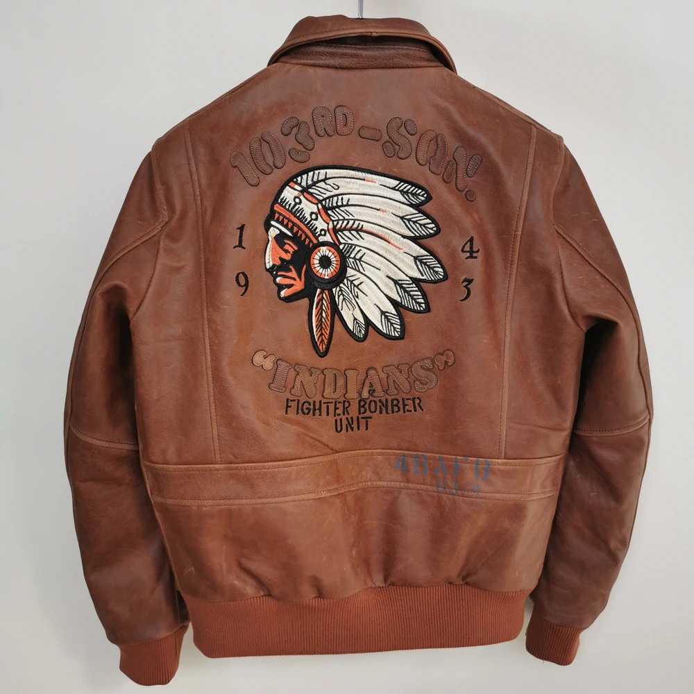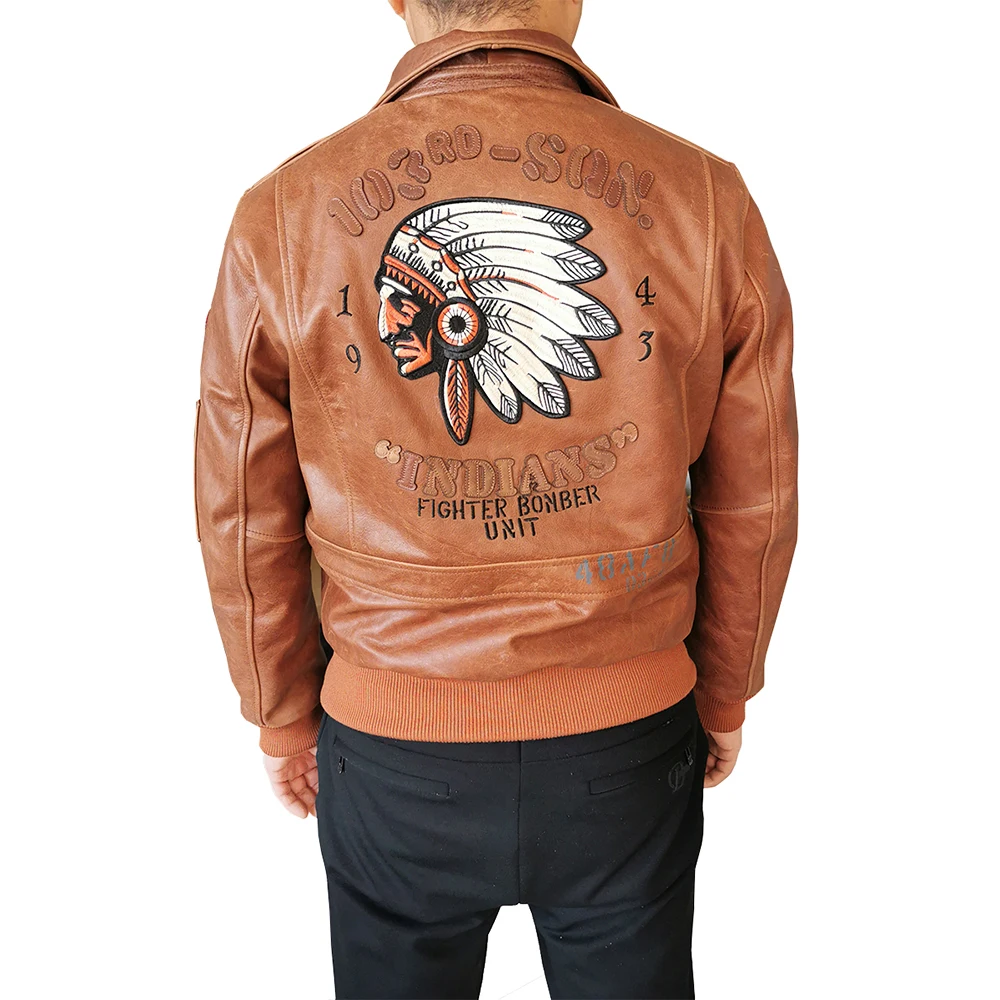 Indian Embroidery Bomber Flight Jackets Natural Genuine Leather Coat Men Cowhide Motorcycle Biker Jackets Fashion Clothing M600