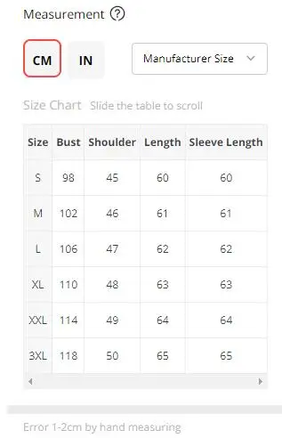 1. All measurements are in CM with 1-2cm measurment tolerance