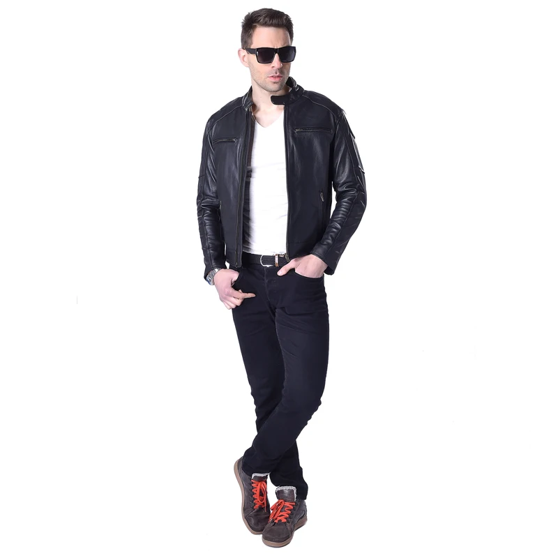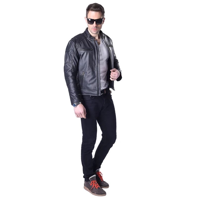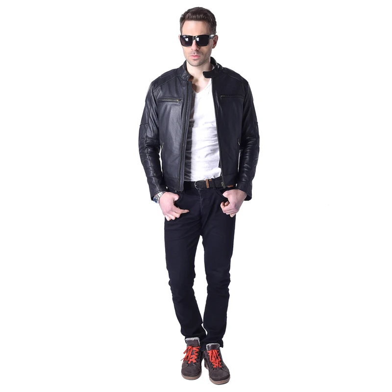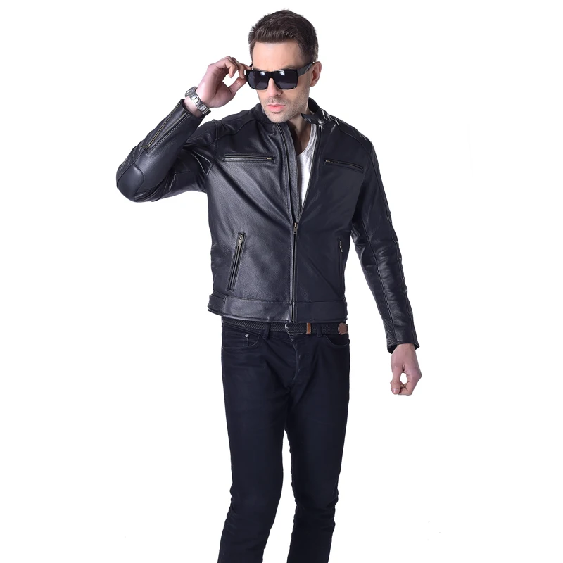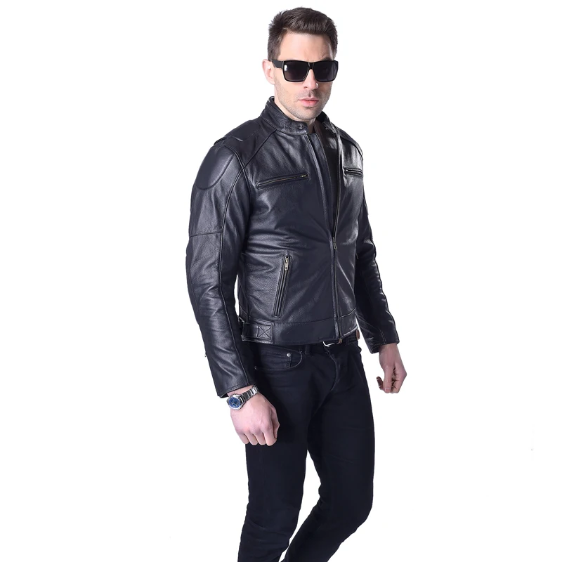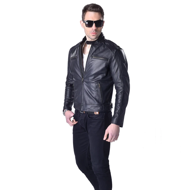 Motorcycle Biker Men Genuine Cowhide Leather Jacket Black Thick Motor Real Coat Male Skin Clothing Winter M153