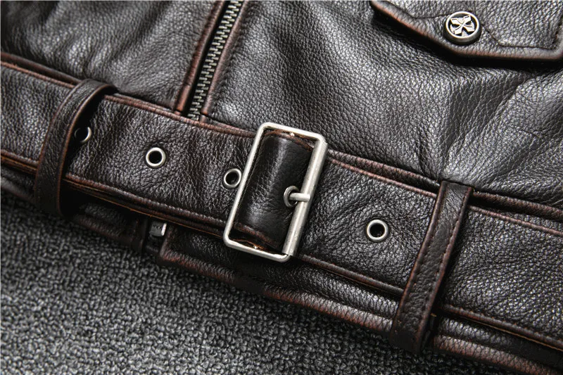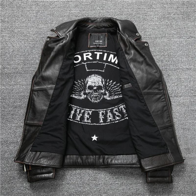 Oblique Zipper Vintage Brown Style Genuine Leather Jacket Men's Really Natural Cowhide Motorcycle Style Slim Jackets Coat S-XL