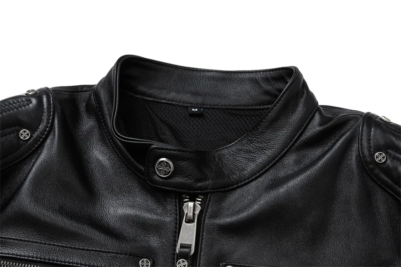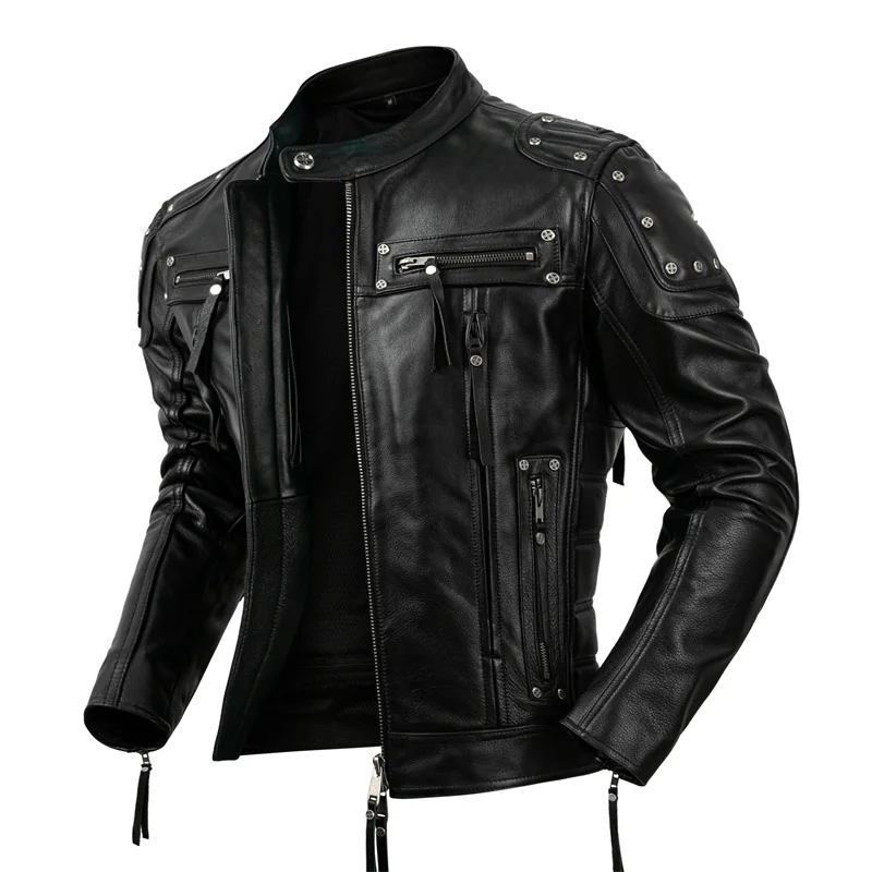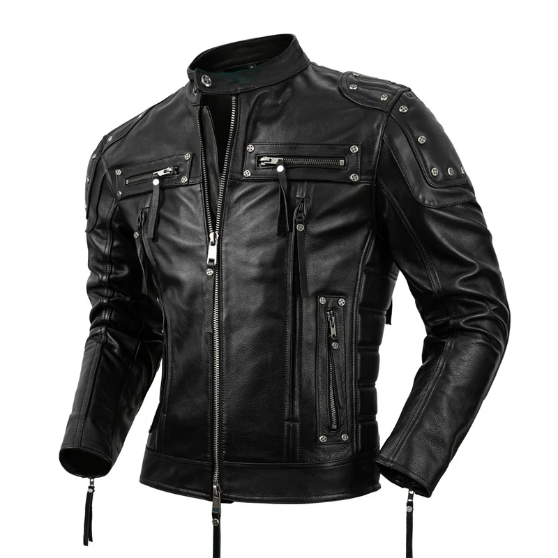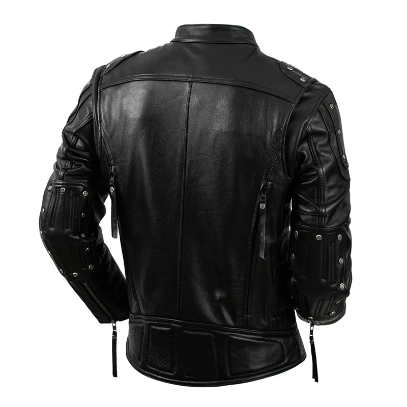 Protective Motorcycle Clothing Cowhide Leather Leather Men's Motorcycle Riding Clothing Calfskin Leather Jacket Biker Coat Men