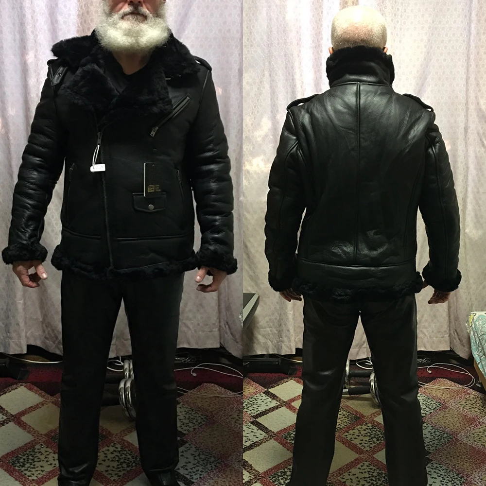 Super Warm For -30 ~-35℃ Thick Shearling Fur Coat Winter 100% Natural Shearling Coat Men Leather Clothing Winter For 100kgs M362