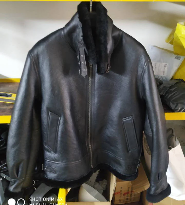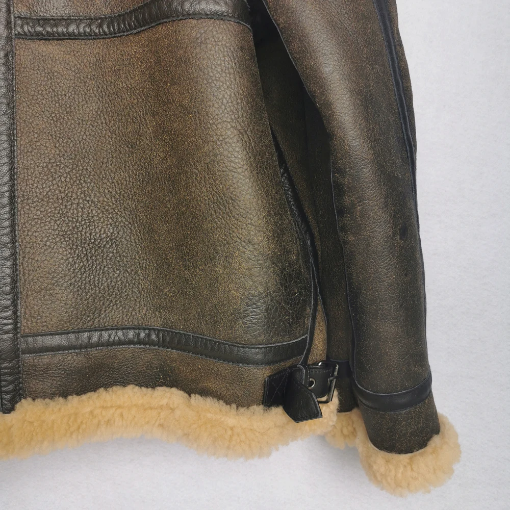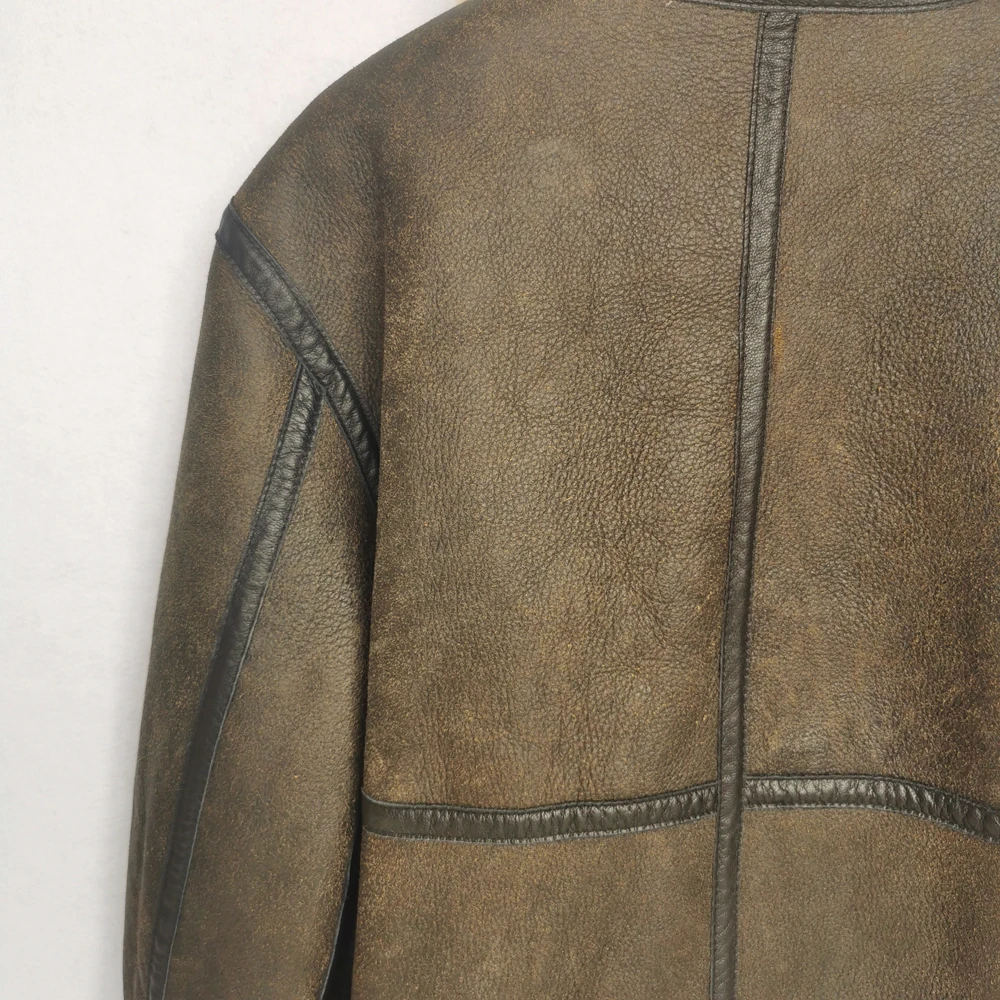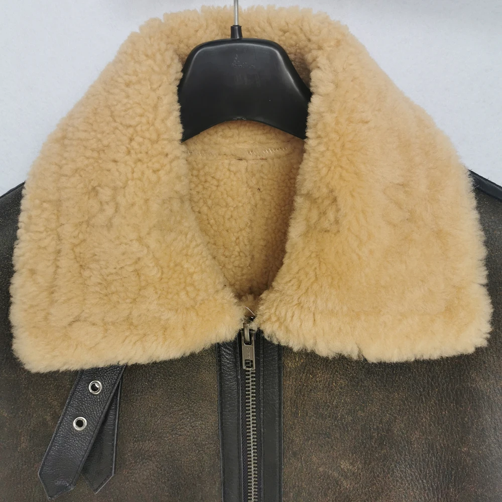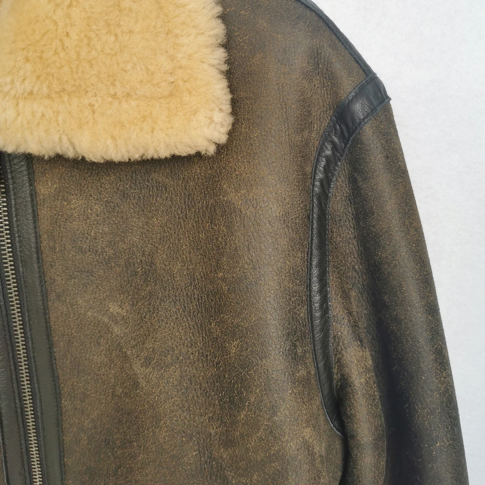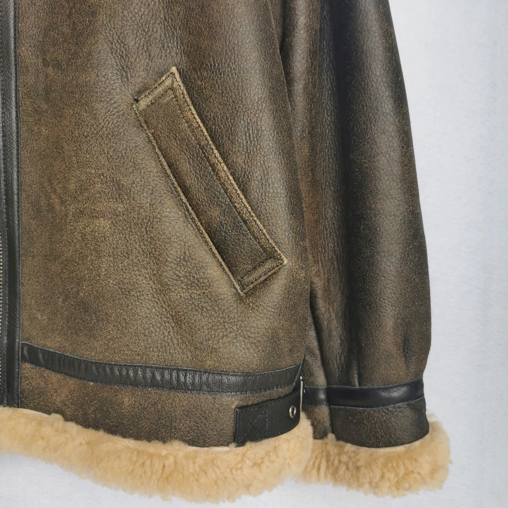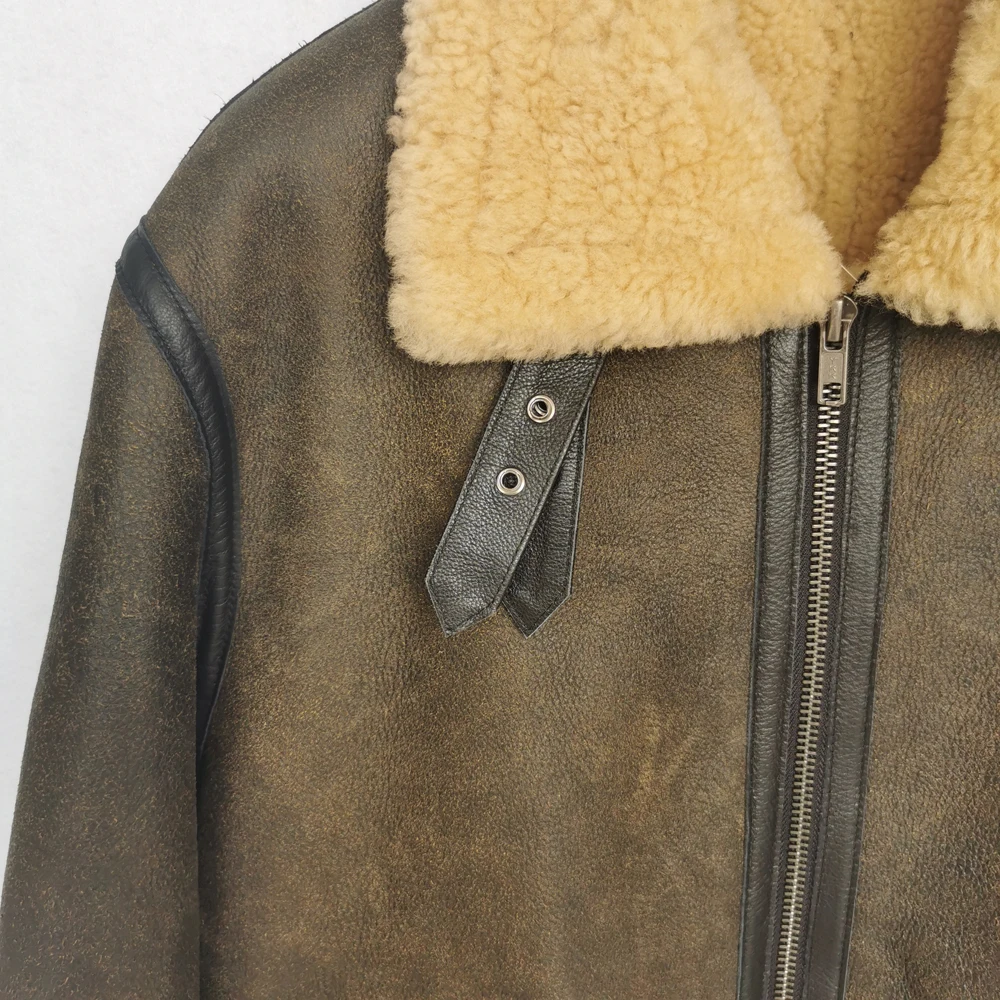 Thick Brown Cracking Leather Shearling Coat Men 100% Natural Sheepskin Fur Coat Winter Man Leather Coat Warm Clothing M372