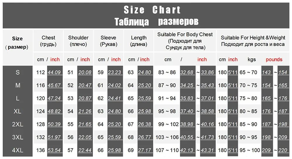 All measurements above are actual garment measurements. For a good fit,pleaseadd 8cm~10cm to your body chestmeasurement when selecting your size from the table above. Please ensure you measure yourself correctly before selecting your size to avoid errors.