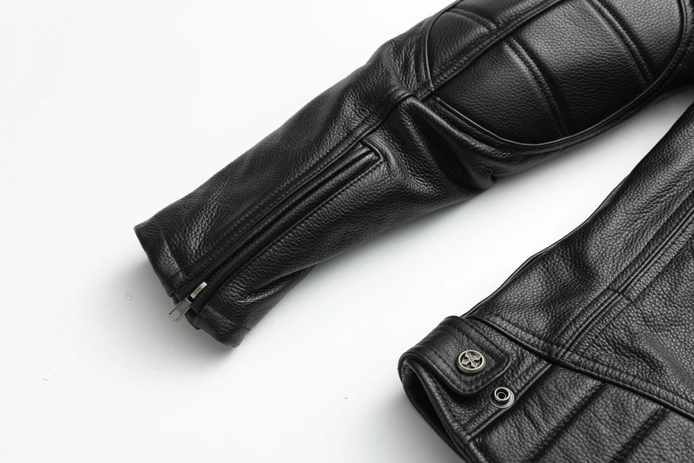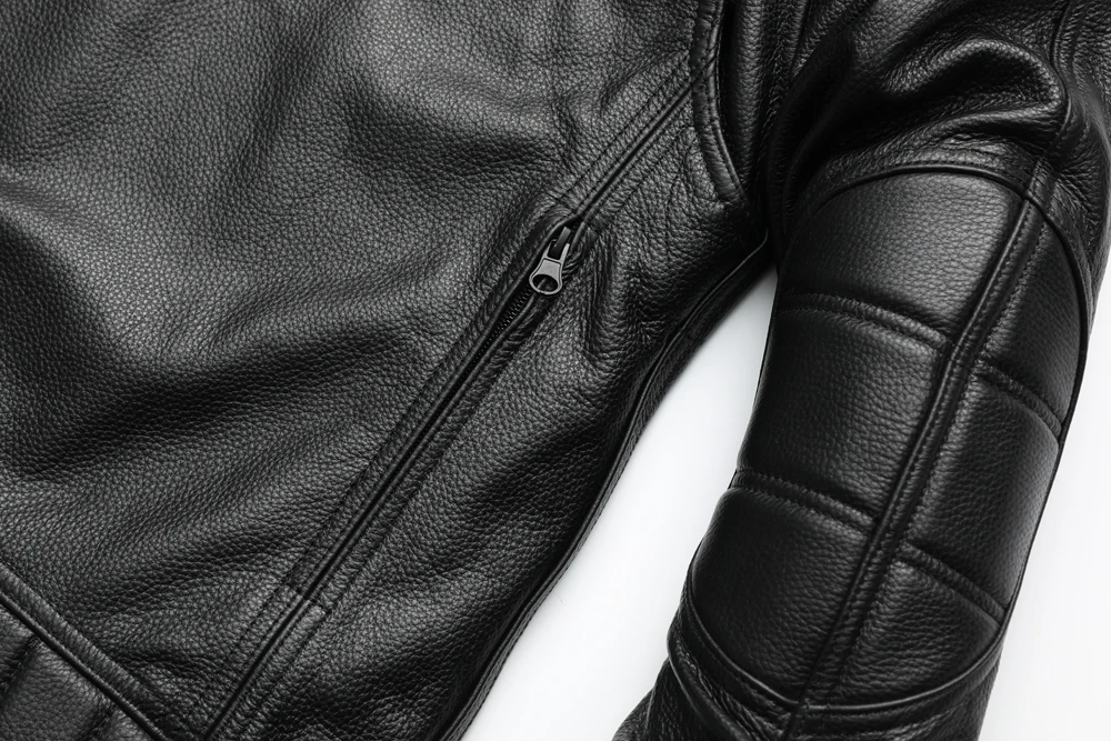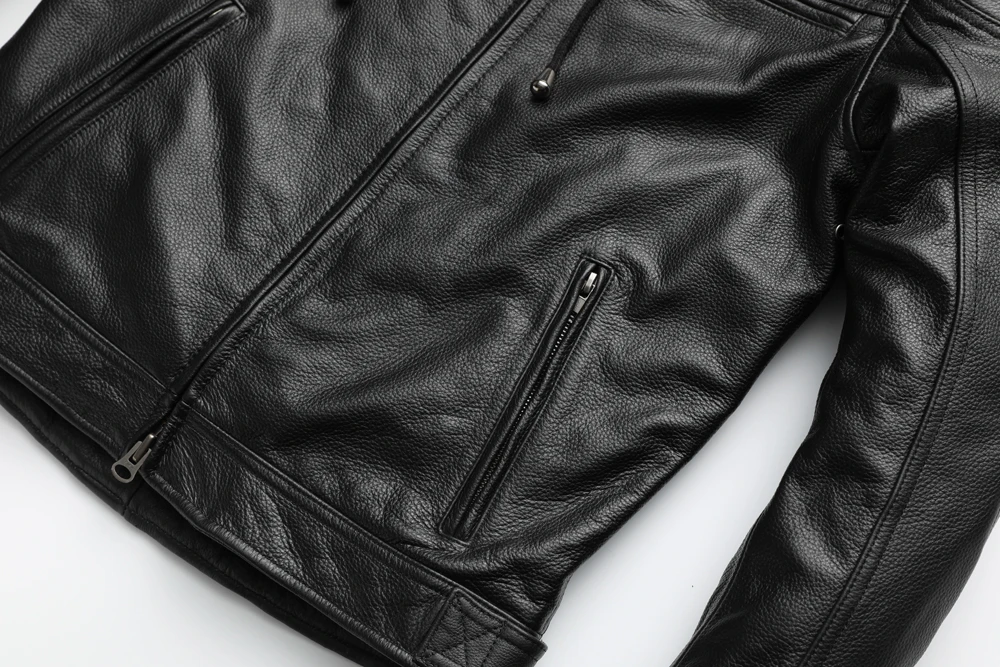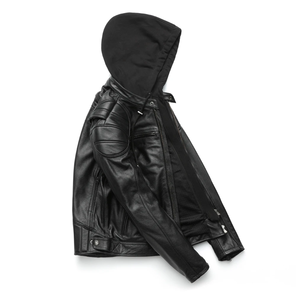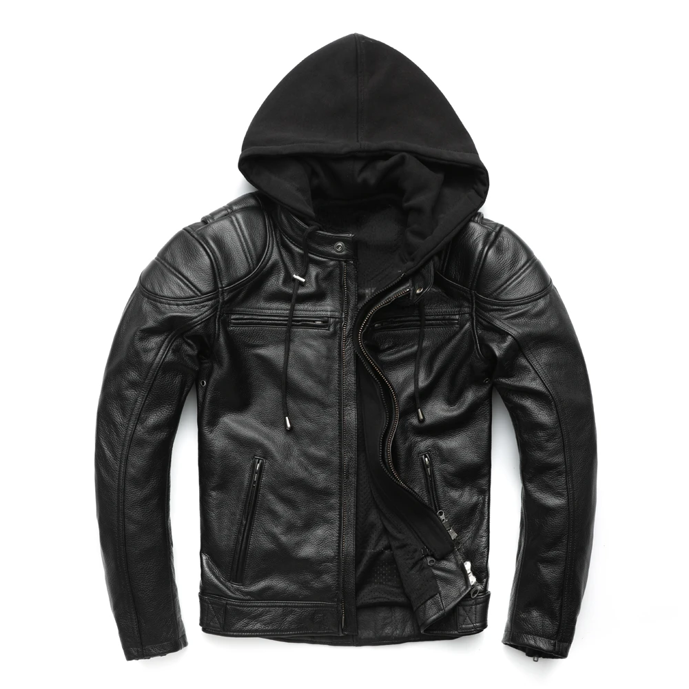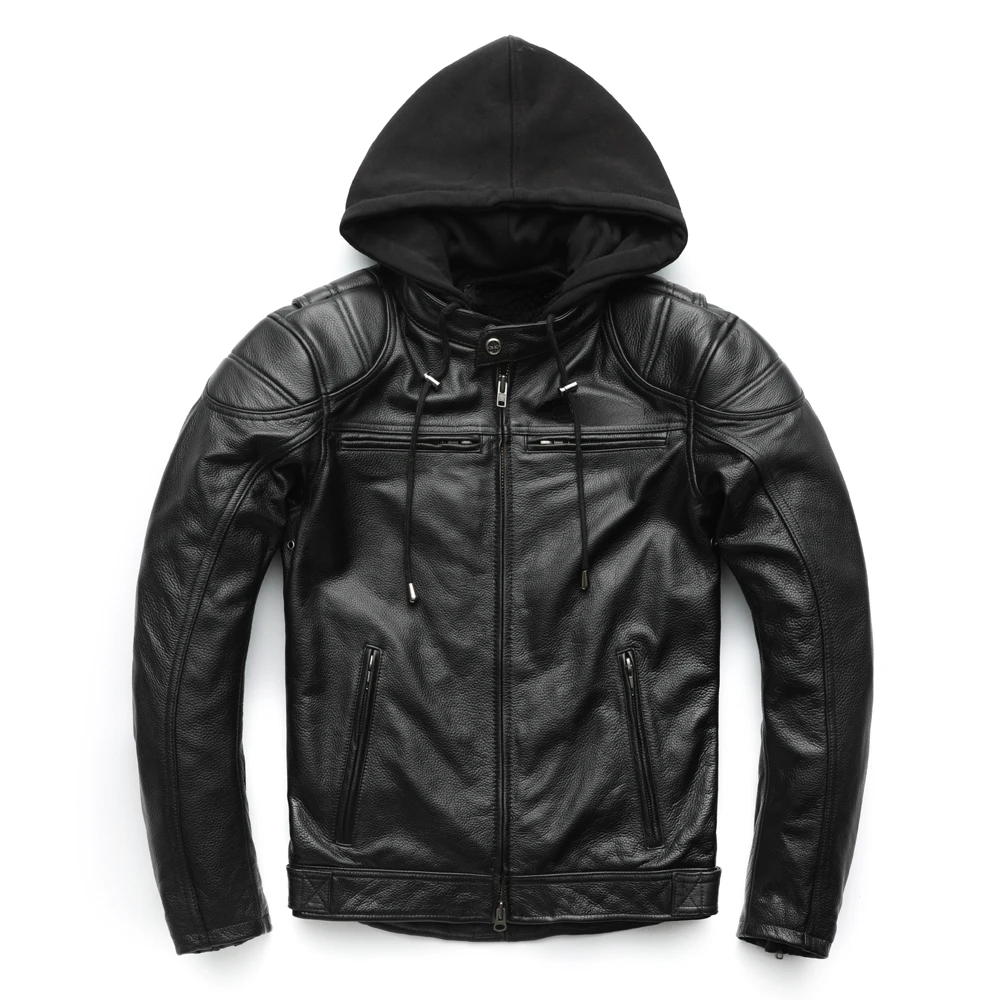 Thick Motorcycle Jacket With Hood Men Leather Jacket100% Cowhide Genuine Leather Coat Winter Biker Jacket Moto Clothing M223