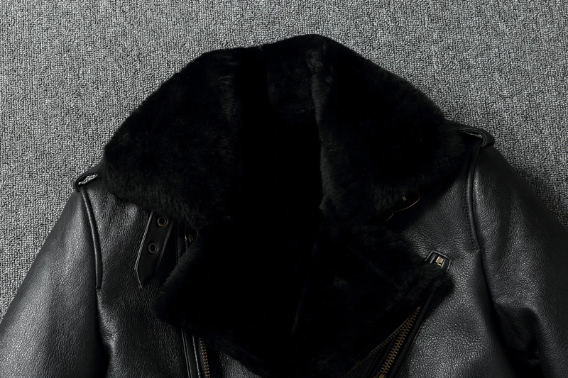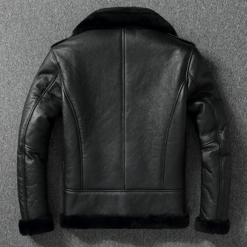 Thick Warm Genuine Sheepskin Real Fur Shearling Jackets for Men Leather Jacket Mens Biker Clothing Men's Coat Winter