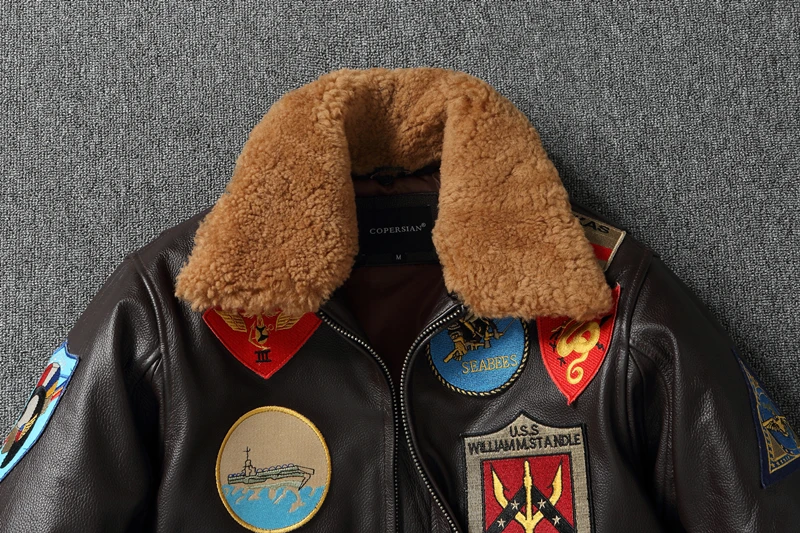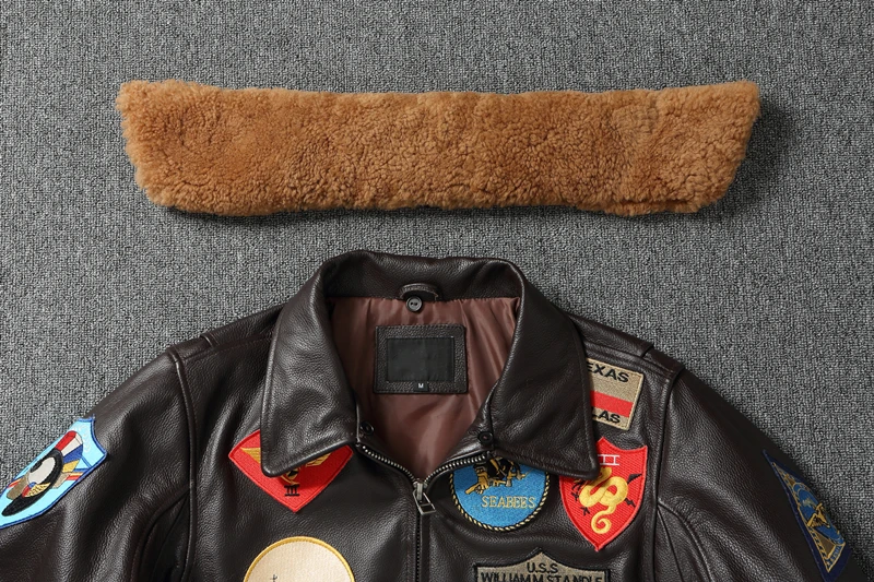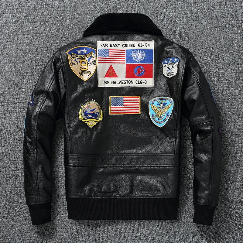 Top G1 Genuine Cowhide Men Leather Jacket Detachable Fur Collar Flight Suit Jackets For Men Military Aviator Coat Winter