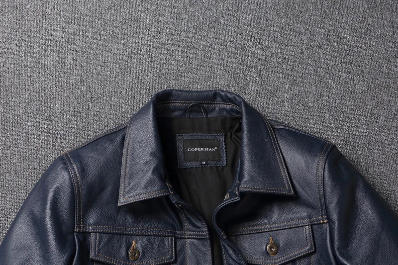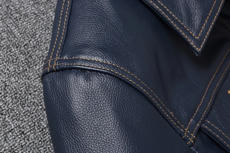 Blue Genuine Cowhide Men Leather Jacket 507 Style Mens Coat Autumn Slim Fit Male Clothing Spring