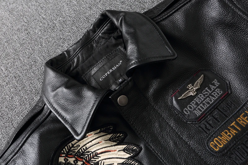 Embroidery Flight Coat Genuine Cowhide Leather Jackets for Men Leather Jacket Pilot Coats Autumn jaquetas masculina de couro