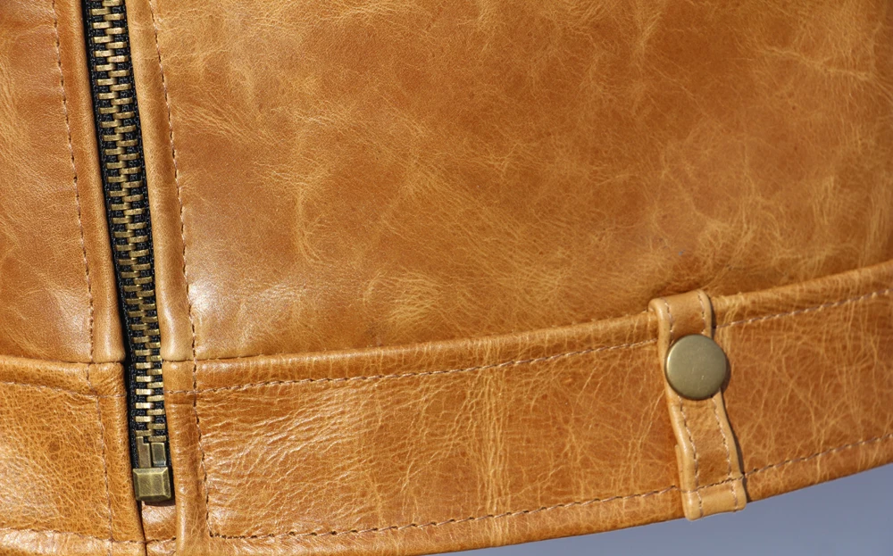 Natural Oil Waxed Cow Leather Jacket Men Biker Clothes Yellow Brown Burgundy Soft Genuine Sheepskin Coat Autumn Mens Jacket