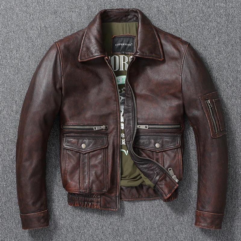Vintage Genuine Leather Jacket Men Real Cowhide Air Force Flight Suit A2 Pilot Jacket Bomber Jacket Jaquetas Masculina De Couro