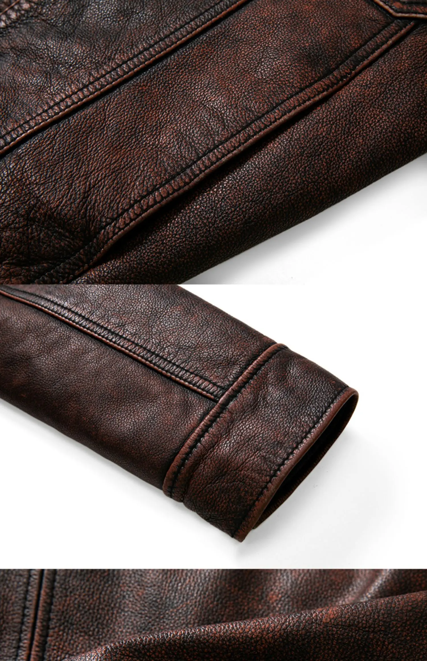 Cow Leather Jacket Men Real Cowhide Coat Men's Stone Milled Vintage Leather Jacket Mens Clothing Cow Coats For Men Autumn