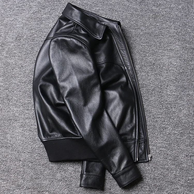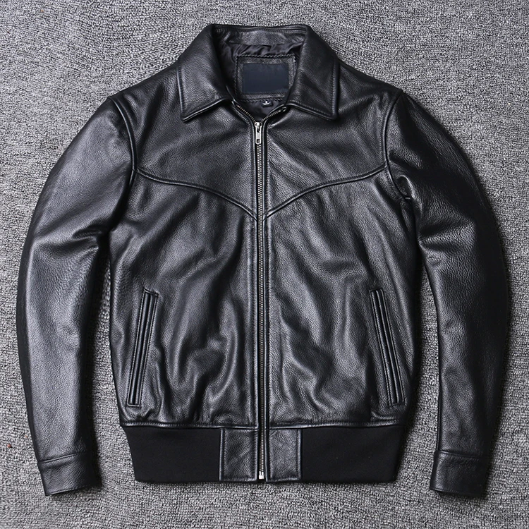 Free Shipping New Genuine Leather Jacket Men's Natural Cowhide Leather Coat Short Fit Lapel Baseball Suit Clothing