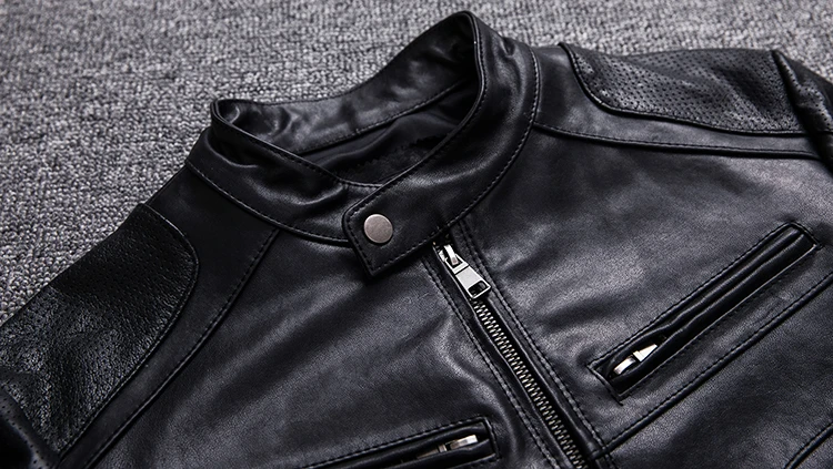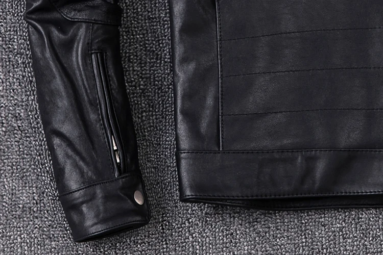 Men's Vegetable Tanned Sheepskin Leather Jacket Motorcycle Biker Jackets Slim Short Stand Collar Genuine Leather Clothes Coat