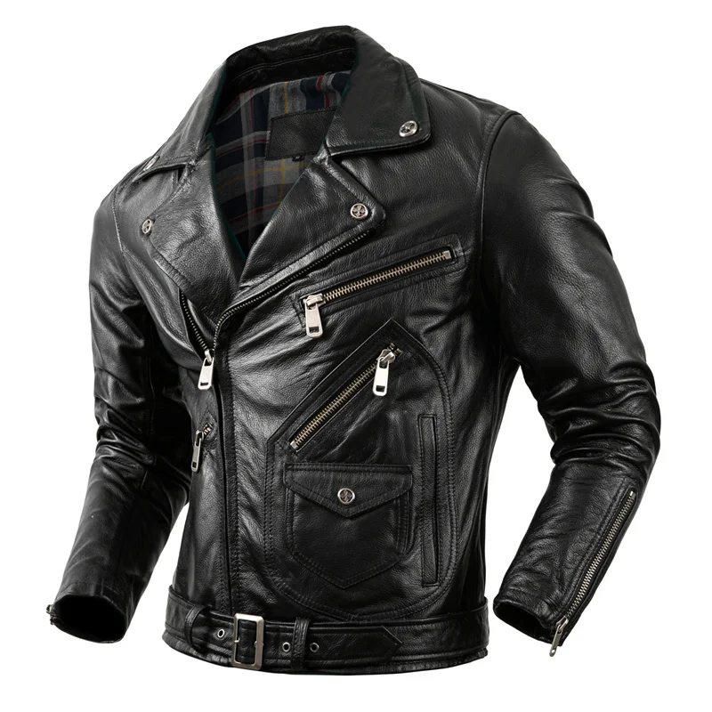 Motorcycle Clothing Mens Real Cowhide Leather Jacket Men's Riding Jacket Autumn Coats for Men Biker Jacket
