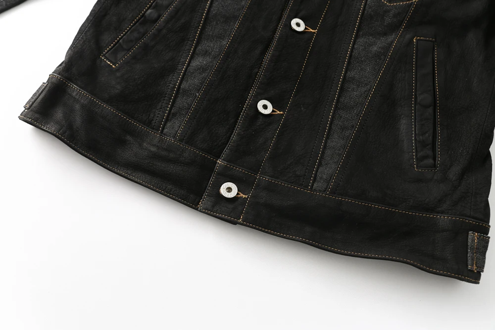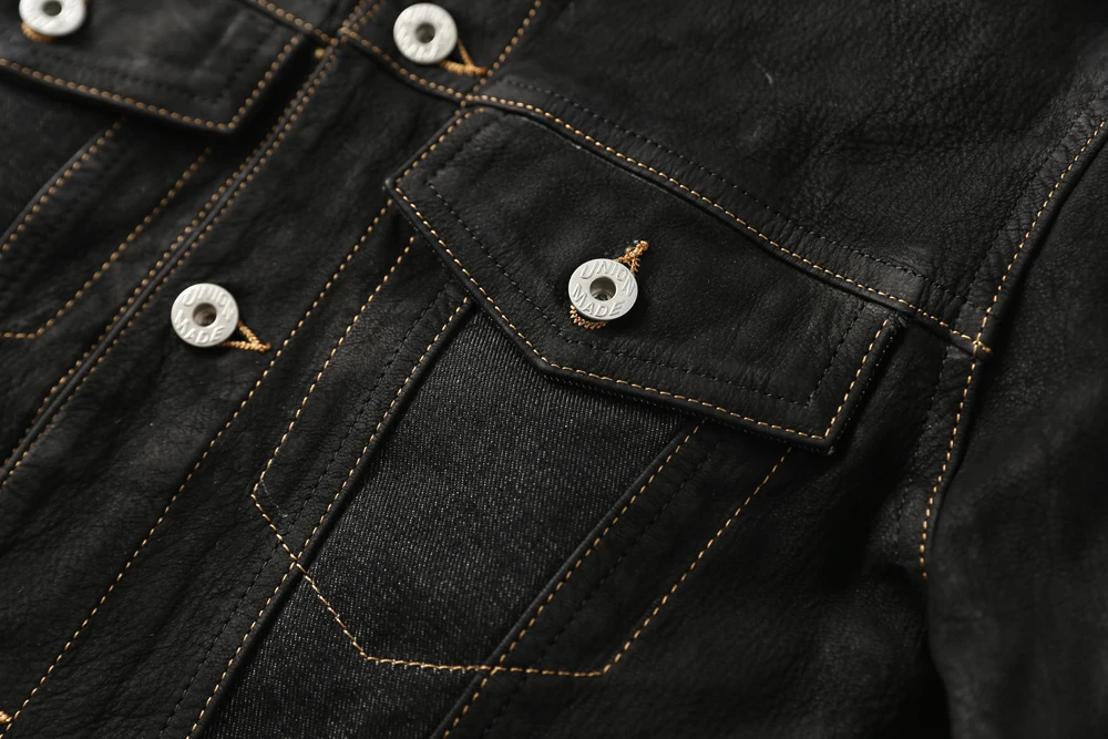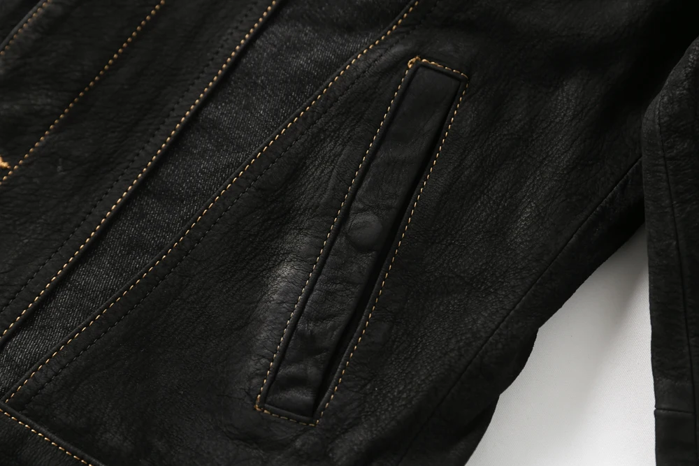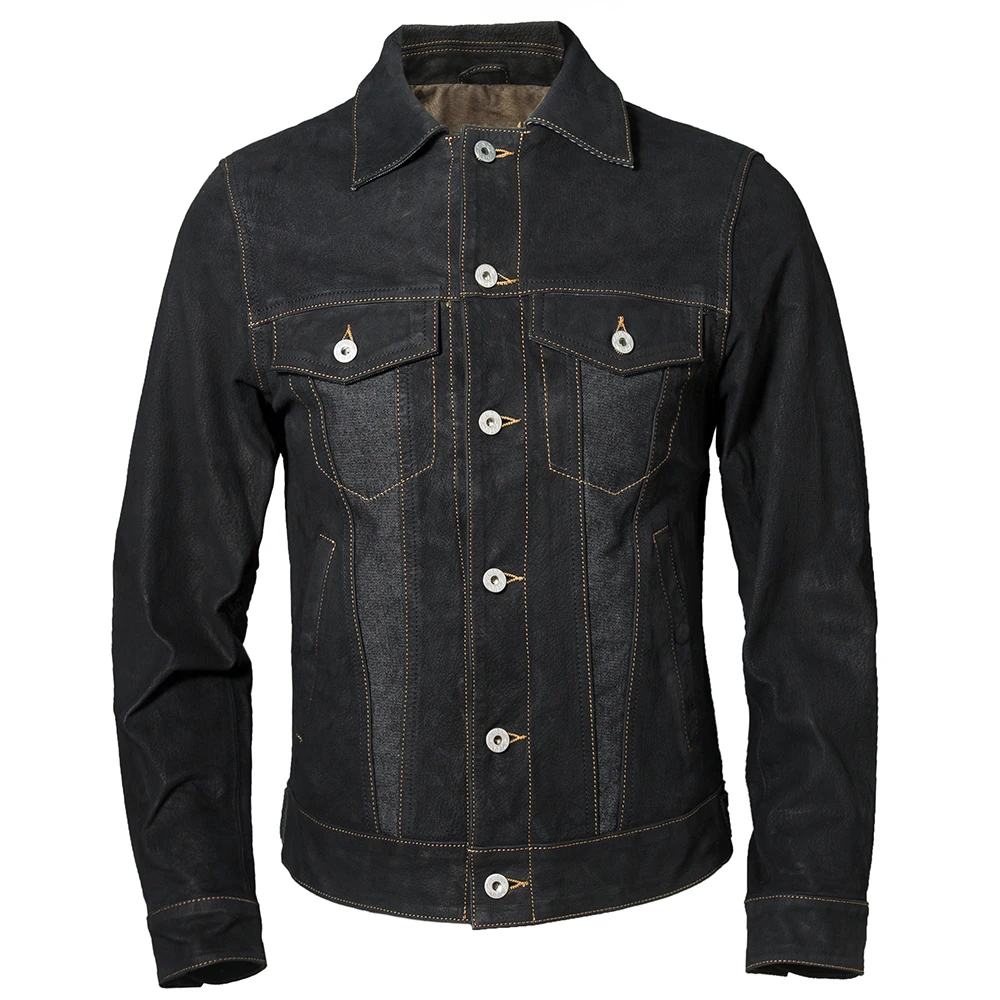 Fashion Men Leather Jacket Matte Goatskin & Denim Spliced Mens Genuine Leather Coat Male Clothing Autumn Spring Asian Size M238