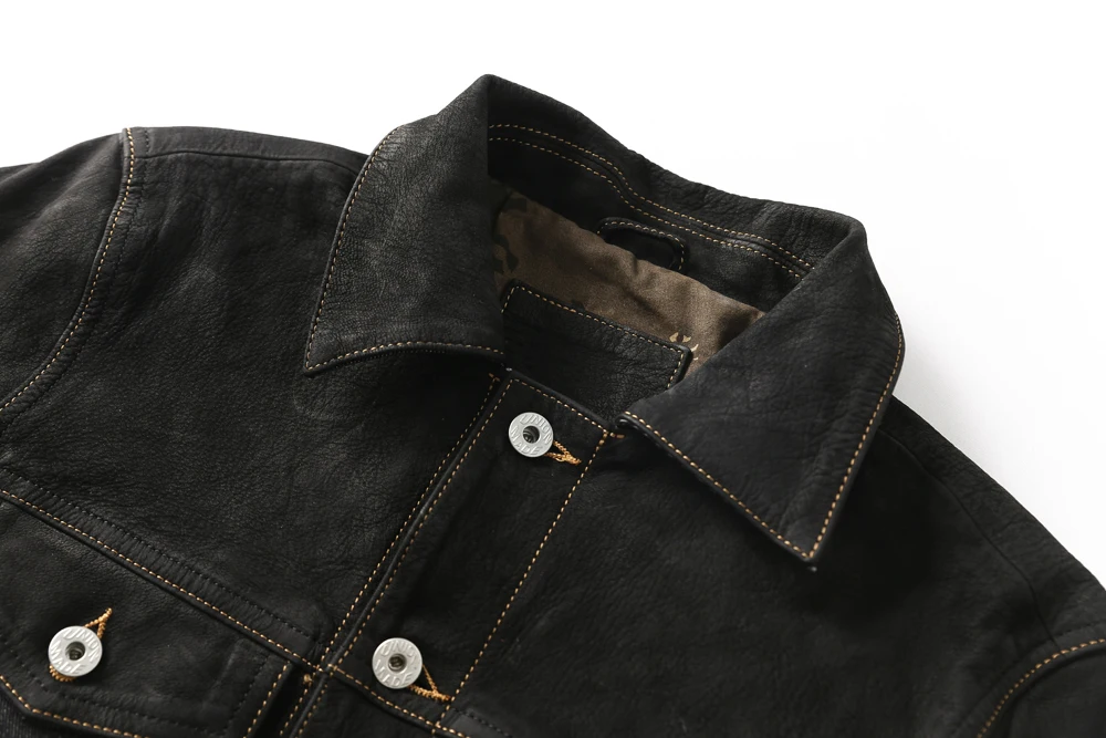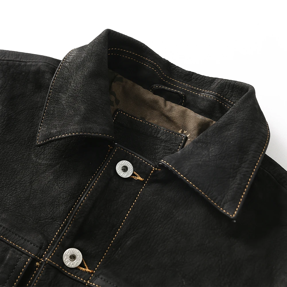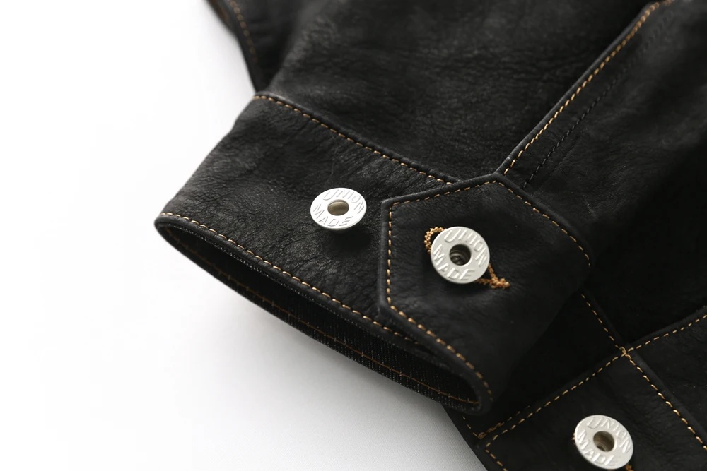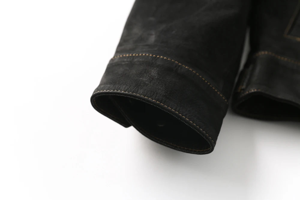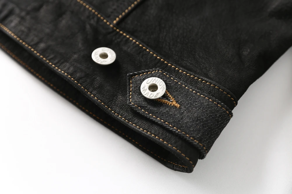 Fashion Men Leather Jacket Matte Goatskin & Denim Spliced Mens Genuine Leather Coat Male Clothing Autumn Spring Asian Size M238