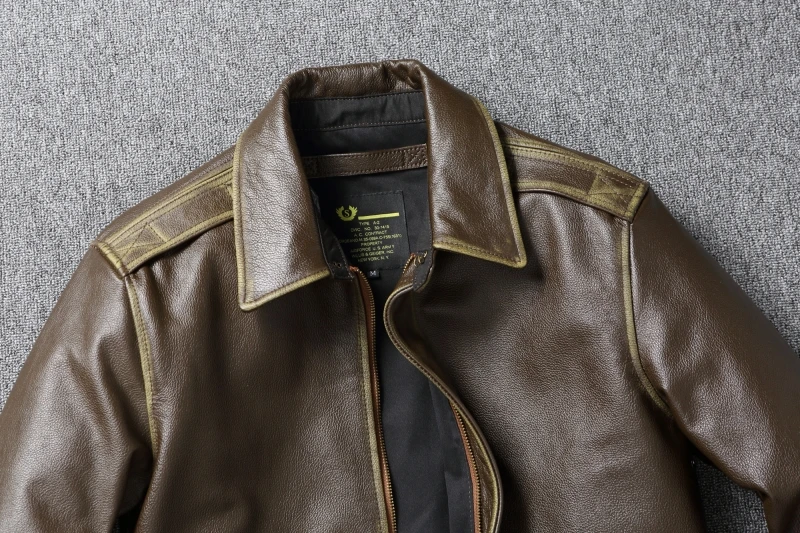 Flight Jackets A2 Edged Army Green Cow Leather Jacket Men Cowhide Bomber Aviator Coat Genuine Leather Jacket Autumn 남성가죽자켓