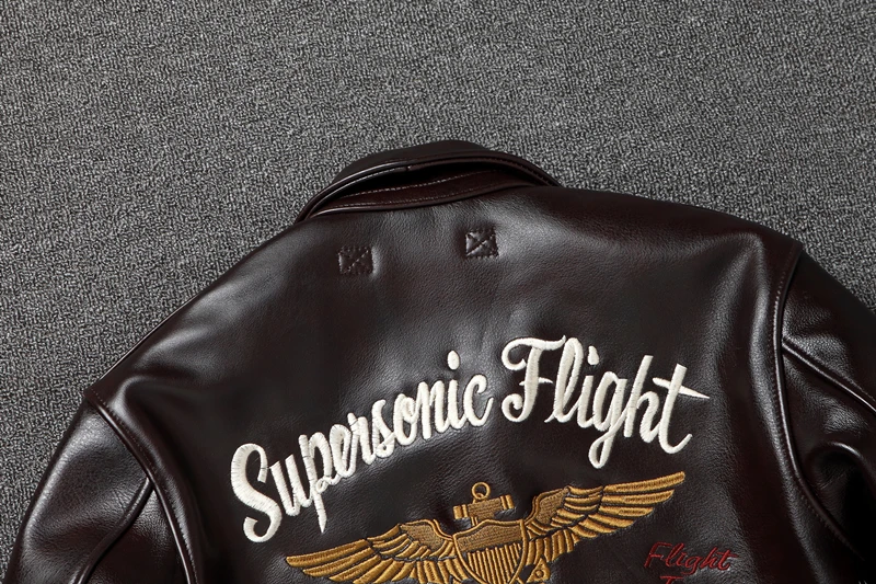 Flight Jackets Air Force A2 Oil Waxed Cowhide Embroidery Genuine Leather Jacket Men Aviator Bomber Mens Cow Leather Coat Autumn