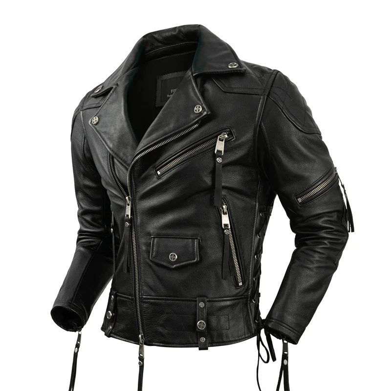 Motorcycle Jacket Real Cowhide Leather Jacket Men's Motorcycle Riding Jacket Genuine Leather Mens Motor Biker Jackets 2XL-5XL