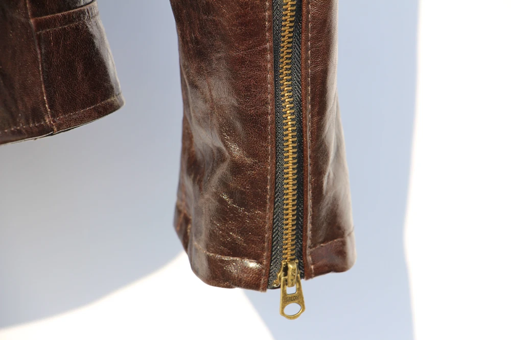 Natural Oil Waxed Cow Leather Jacket Men Biker Clothes Yellow Brown Burgundy Soft Genuine Sheepskin Coat Autumn Mens Jacket