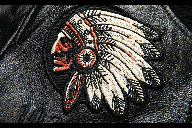New Fashion Indian Embroidery Baseball Jacket Natural Genuine Leather Coat Men's Cowhide Leather Motorcycle Slim Jackets